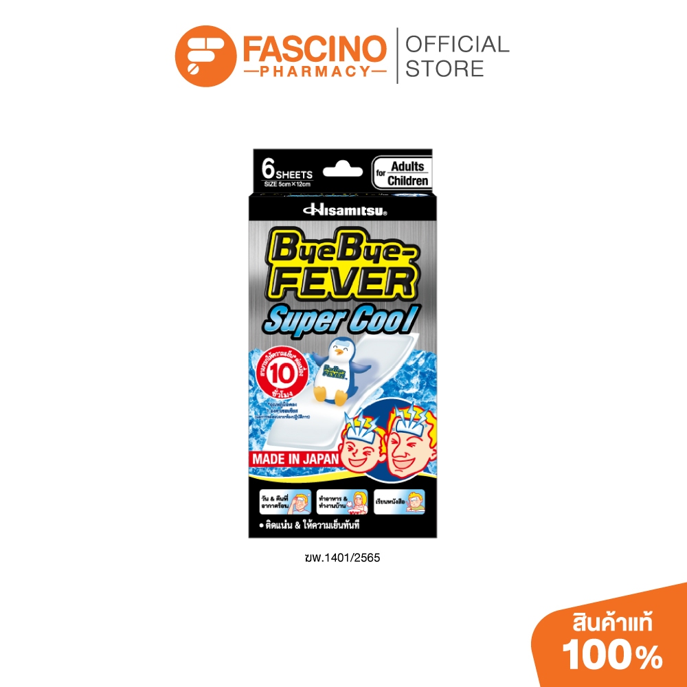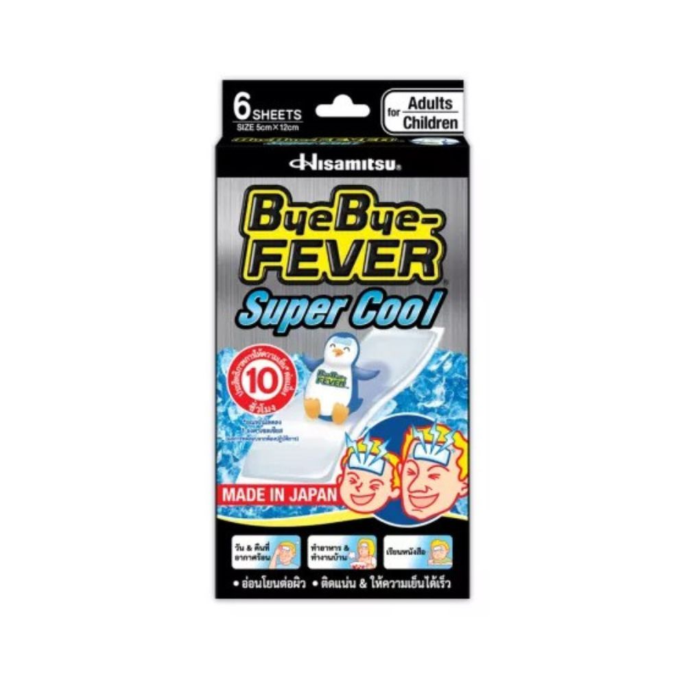 ByeBye Fever Super Cool แผ่นเจลระบายความร้อน ลดไข้ สูตรเย็นมากเป็นพิเศษ 6 ชิ้น/กล่อง