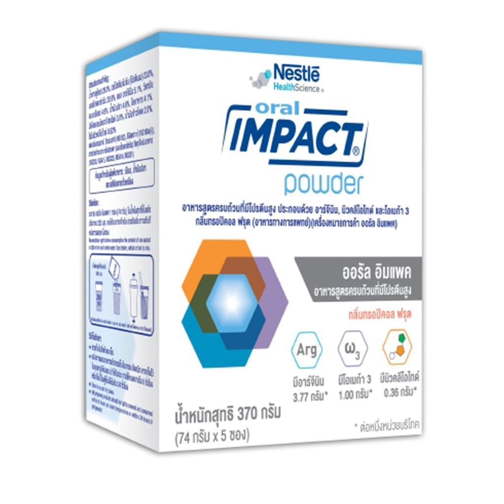 Oral impact อาหารทางการแพทย์ ออรัล อิมแพค 370 กรัม (5 ซอง) ล้อตใหม่ หมดอายุ 26/2/2026 1 กล่อง