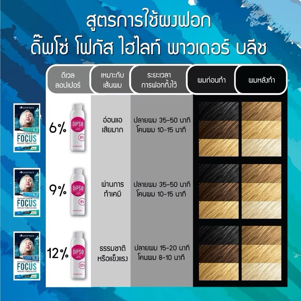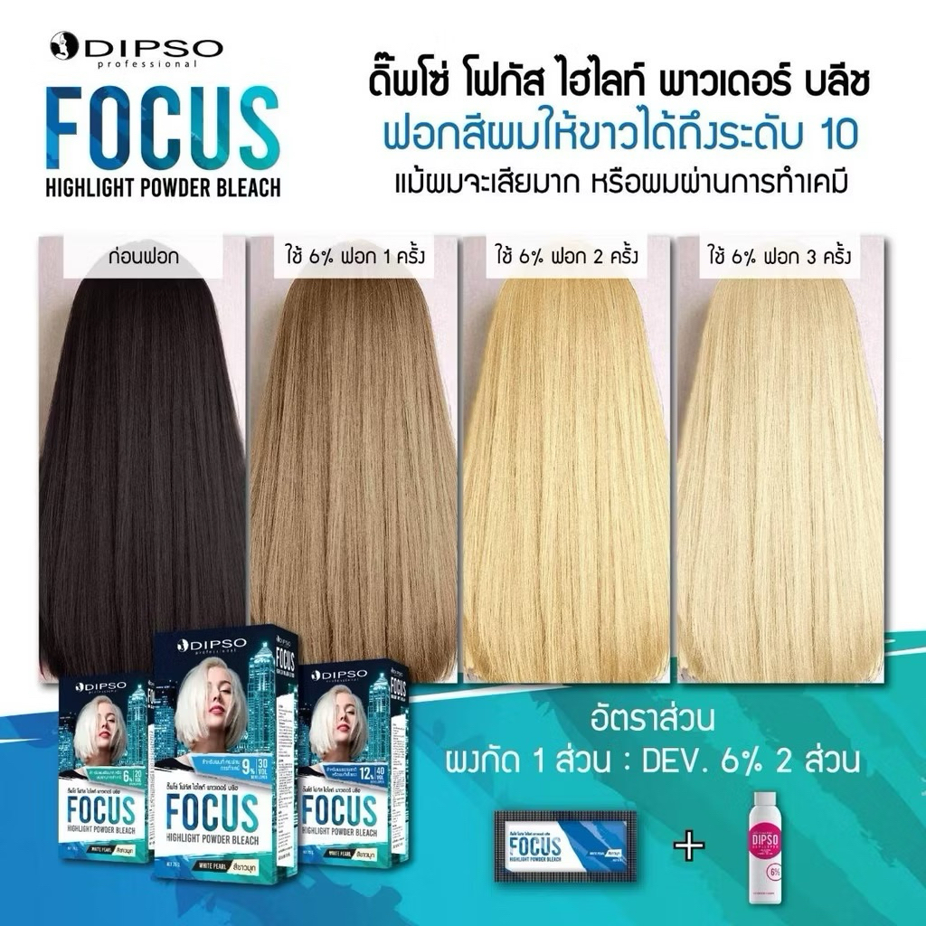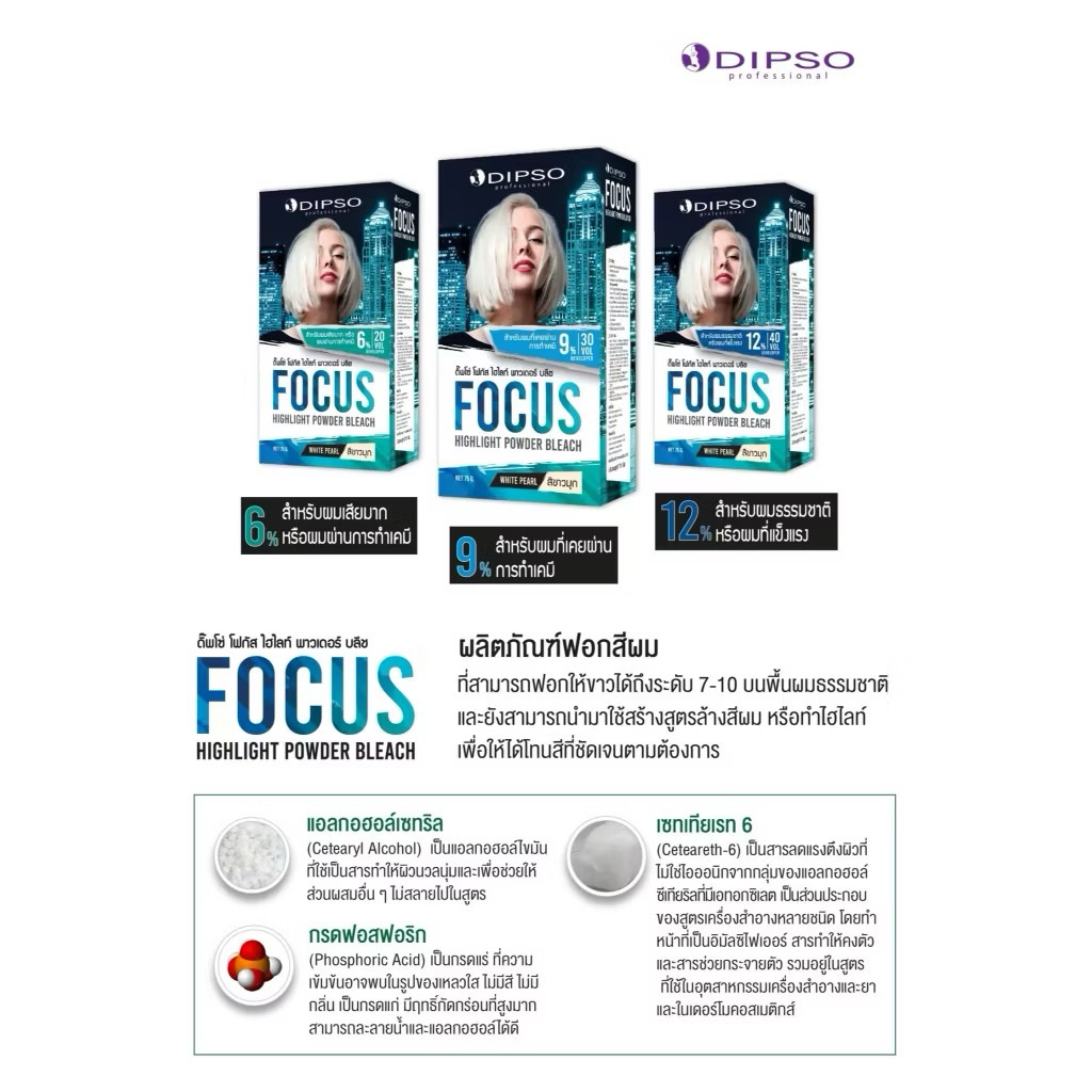 ดิ๊พโซ่ผงฟอกผมสีขาวมุก Dipso Focus 6% 9% 12% (ผงฟอก +ไฮ) ขนาด 75g