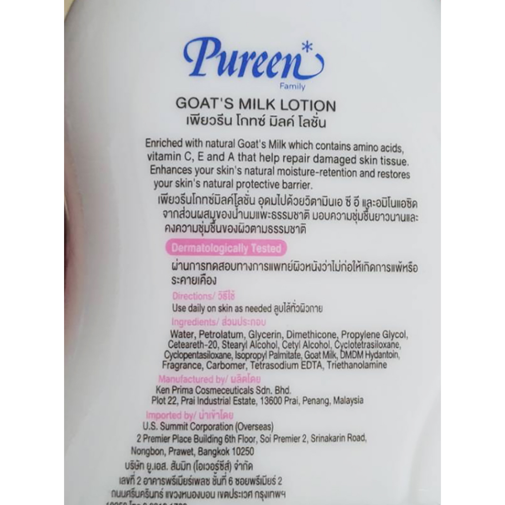 แพคคู่สุดคุ้ม โลชั่นเด็กเพียวรีน Pureen Goat's Milk Baby Lotion 500ml 2 ขวด 1แถม1 โลชั่นเด็กเล็ก สูตรน้ำนมแพะ โกทซ์มิลค์