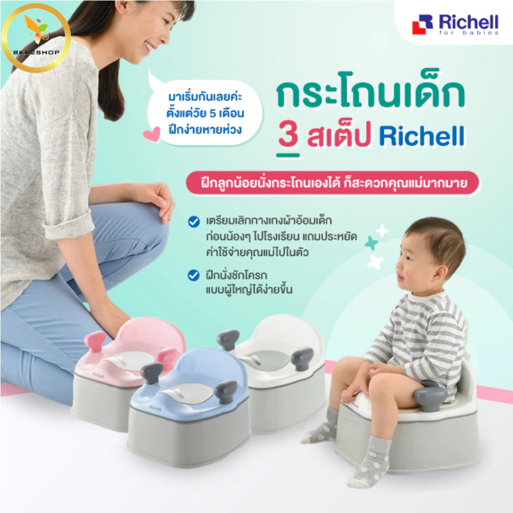 Richell (ริเชล) กระโถนเด็ก ปรับใช้ได้ 3 Step ตามพัฒนาการลูกน้อย เหมาะสำหรับเด็กวัย 4 เดือนขึ้นไป