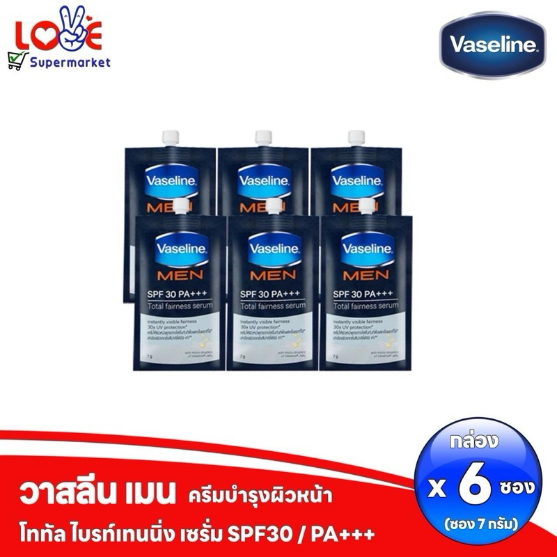 (กล่อง 6 ซอง) วาสลีน เมน โททัล แฟร์เนส เซรั่ม SPF30 PA+++ 7 มล. x 6