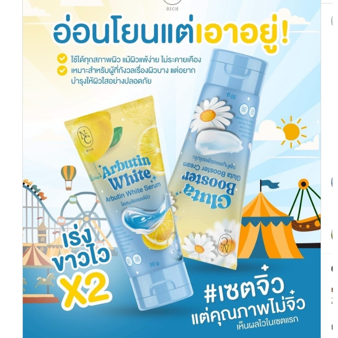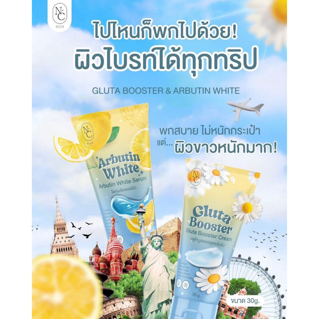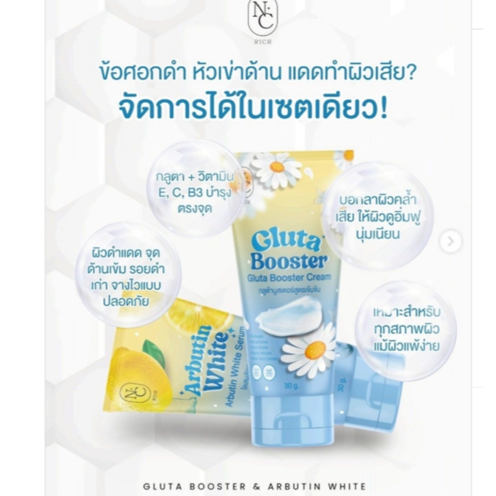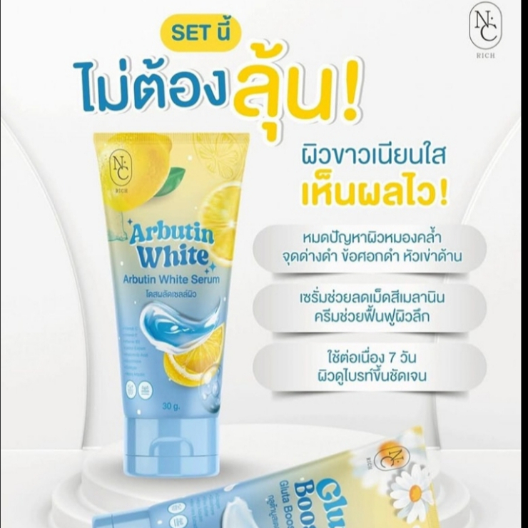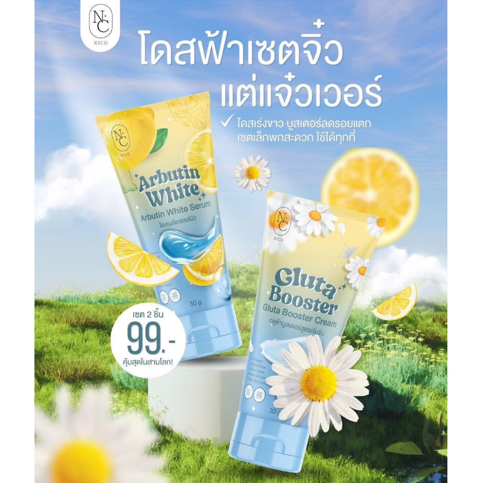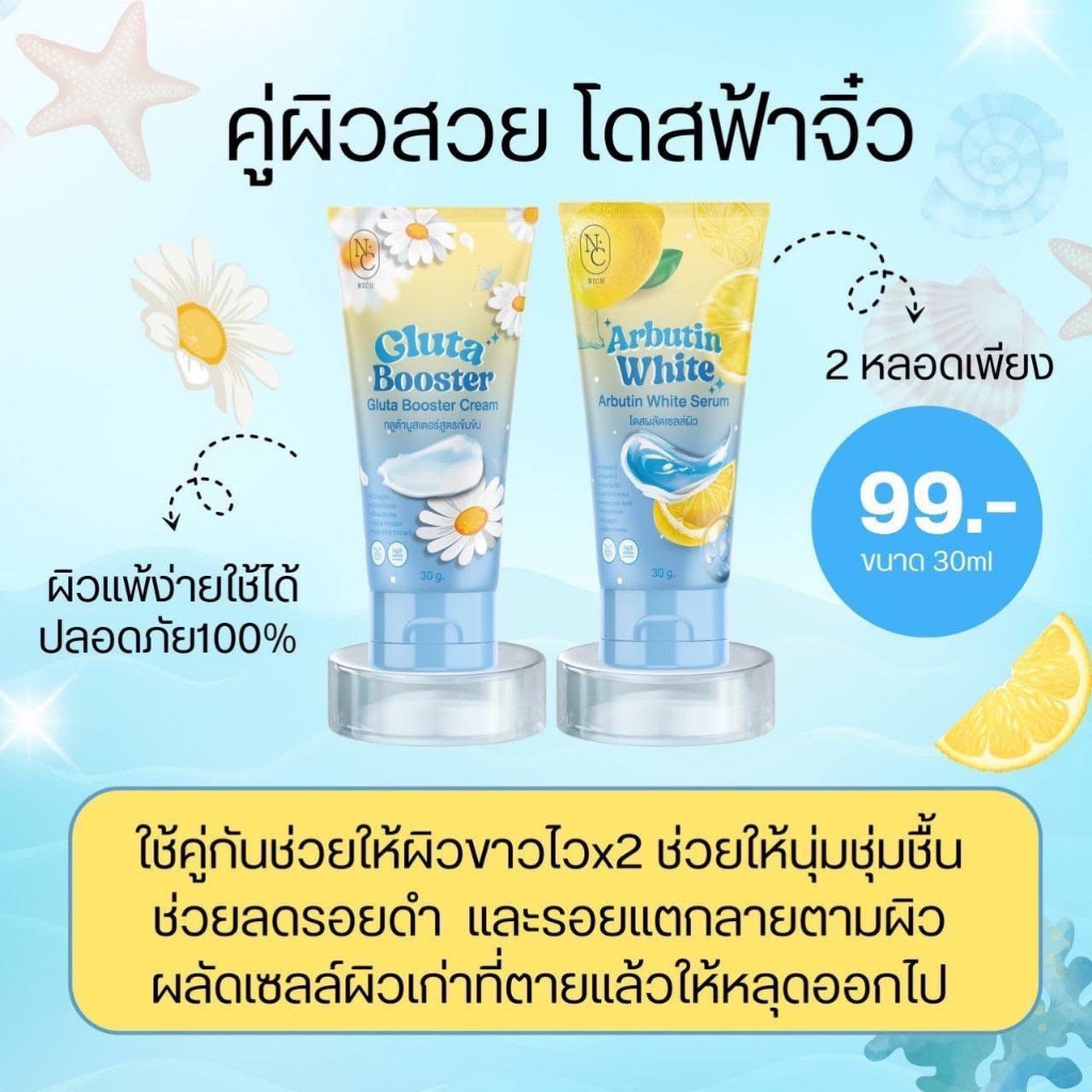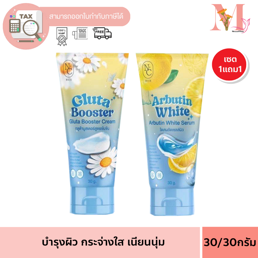 โดสฟ้าเซตจิ๋ว กลูต้าบูสเตอร์ ARBUTIN & GLUTA โดสผลัดเซลล์ผิว+บูสเตอร์ เชต1แถม1 ขนาด 30 กรัม แบบหลอด