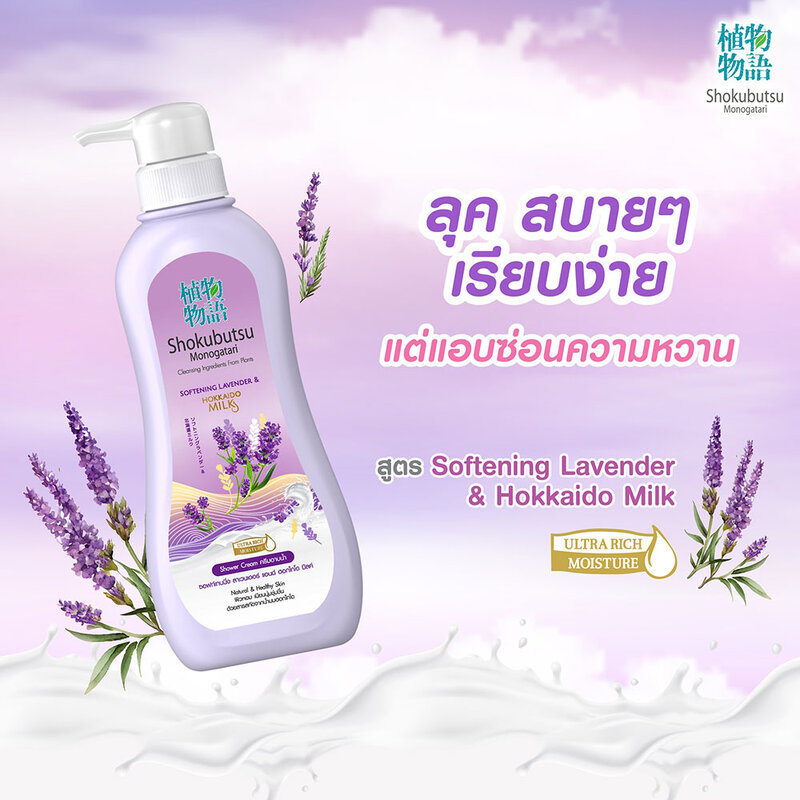 Shokubutsu Monogatari Hokkaido Milk โชกุบุสซึ โมโนกาตาริ ครีมอาบน้ำฮอกไกโด มิลค์ 500ml (Lavender/Sakura/Cherry)