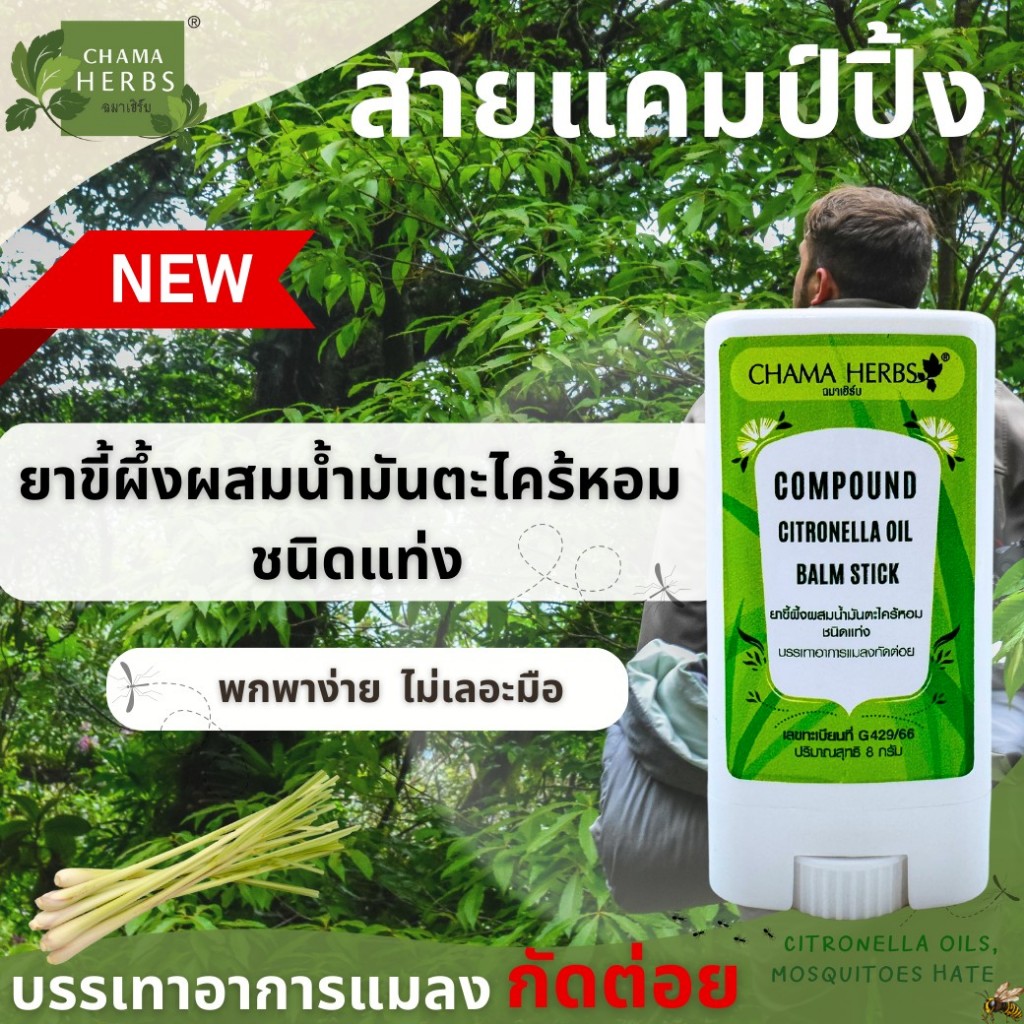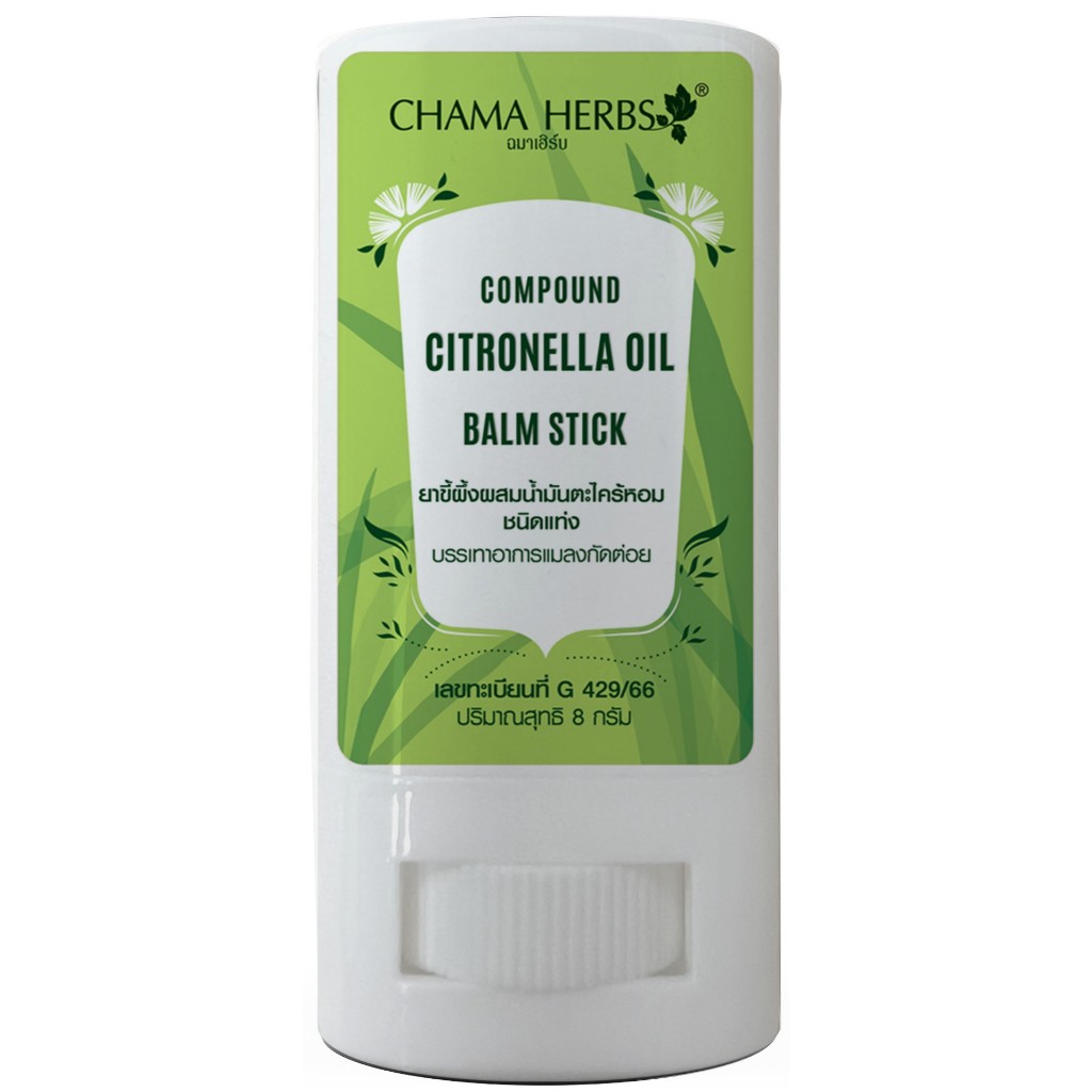 Chama Herbs ฉมา เฮิร์บ ยาขี้ผึ้งผสมน้ำมันตระไคร้หอม แบบสติ๊ก Citronella Oil Balm Stick (8 g)