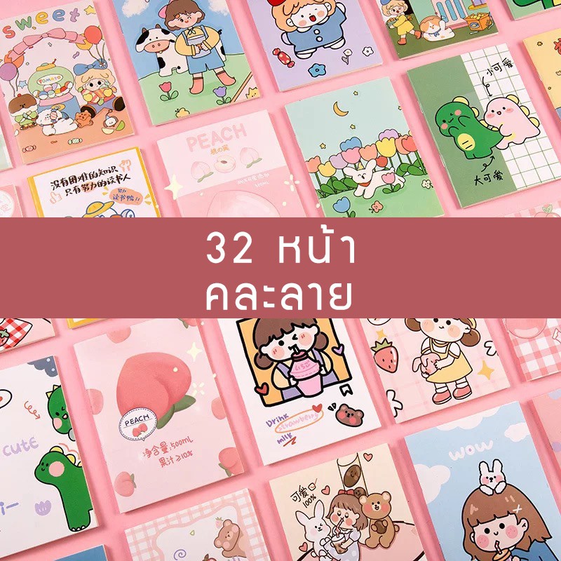 สมุดโน๊ตเล่มเล็กสำหรับจดบันทึก ลายการ์ตูนน่ารัก มีเส้นบรรทัด สุ่มลายจากตัวเลือก
