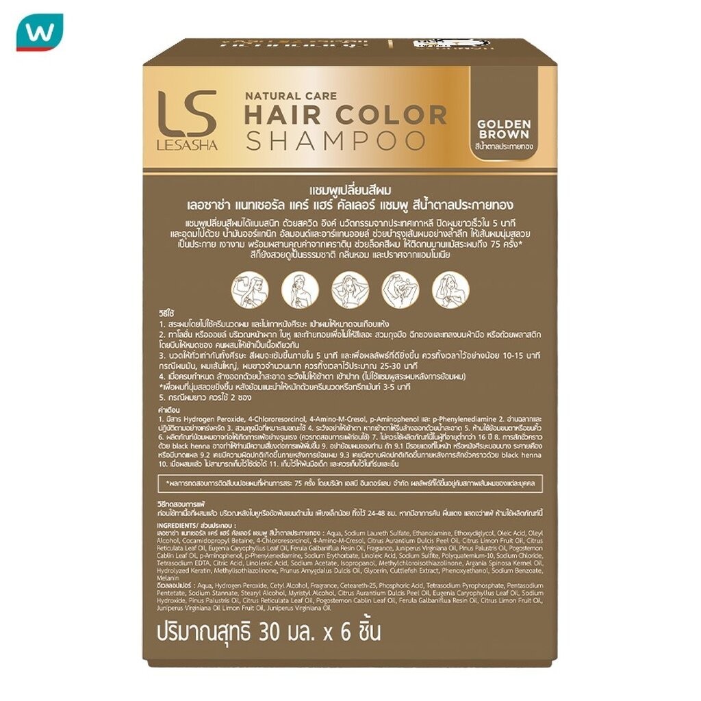 Lesasha เลอซาช่า แนทเชอรัลแคร์แฮร์คัลเลอร์ แชมพู สีน้ำตาลประกายทอง 30มลX6ซอง