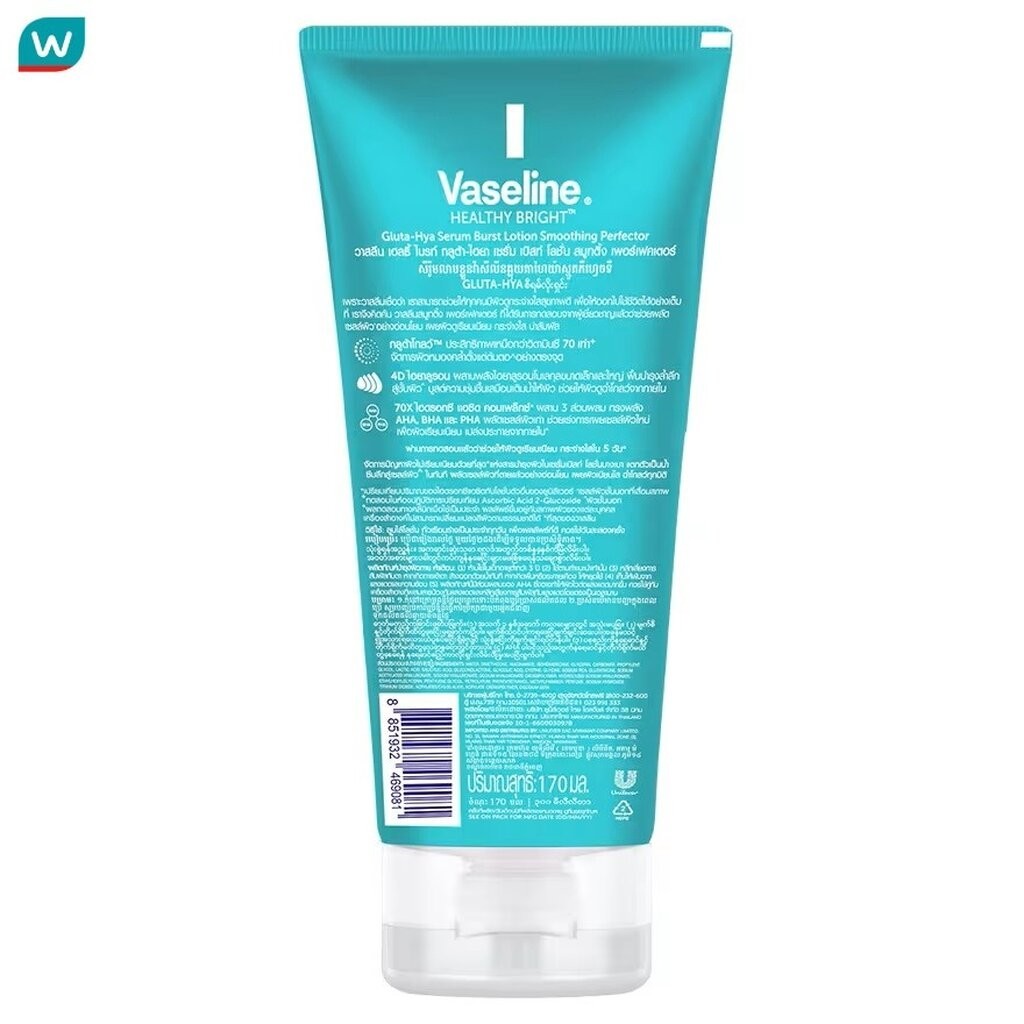 Vaseline วาสลีน เฮลธี้ ไบรท์ กลูต้า-ไฮยา เซรั่ม เบิสท์ โลชั่น สมูทติ้ง เพอร์เฟคเตอร์ 170 มล.