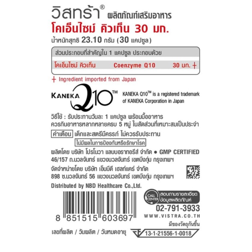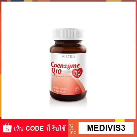 Vistra CoenzymeQ10 Soft Gel วิสทร้าโคเอ็นไซต์ คิว10 ต้านอนุมูลอิสระชะลอริ้วรอยก่อนวัย 30แคปซูล 09095