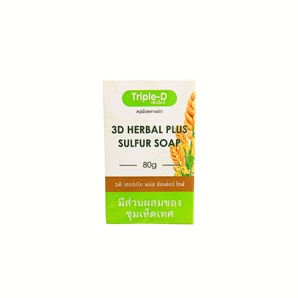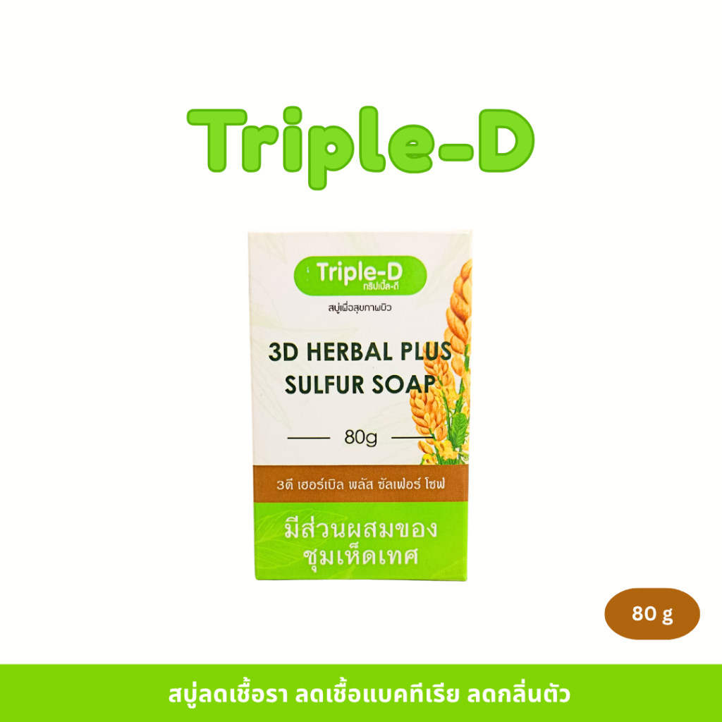 Triple-D 3D herbal Plus sulfur soap 80g สบู่ลดเชื้อรา ลดเชื้อแบคทีเรีย ลดกลิ่นตัว