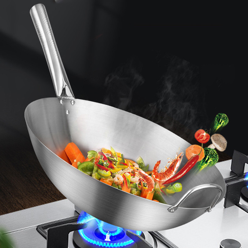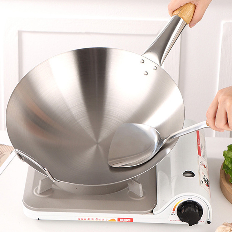 กระทะสแตนเลส กะทะจีน กระทะไม่ติดกระทะ กระทะสแตนเลส ผัดข้าว กระทะจีน กระทะทอด อย่างหนา ทนความร้อน z0151+z0150+z0148+z0147