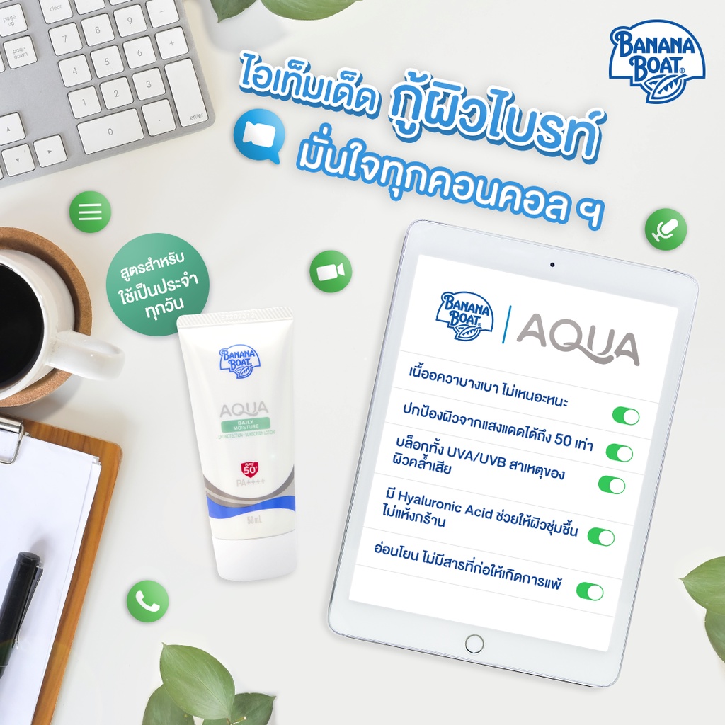 [แพ๊คคู่] Banana Boat Aqua Daily Moisture Sunscreen Lotion SPF50+ PA++++ (50 ml.) SFW21+SFW21
