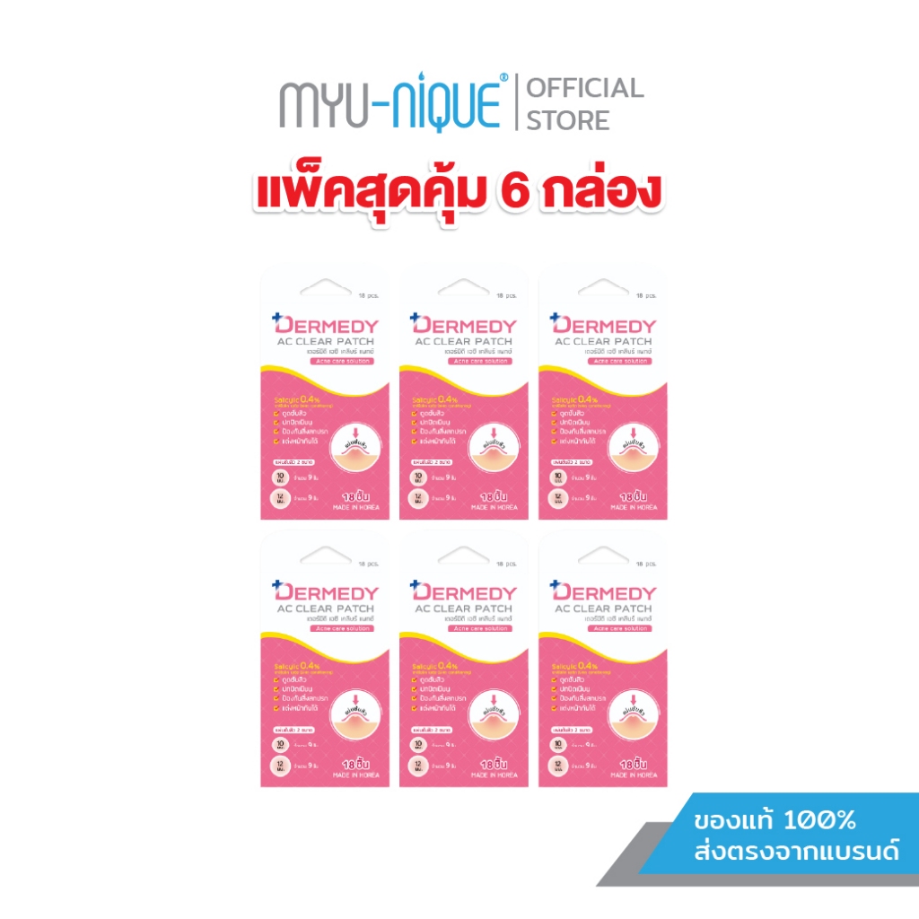 [แพ็ค6ชิ้น] DERMEDY AC CLEAR PATCH 18 DOT UNIT BOX แผ่นแปะสิวเดอร์มีดี เอซี เคลียร์ แพทซ์ (18 ดวง)