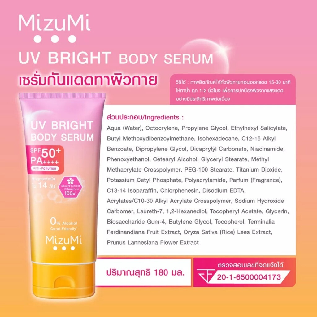 แบบซอง MizuMi UV Bright Body Serum / MizuMi UV Water Serum SPF50+ (สินค้าตามตัวเลือก)