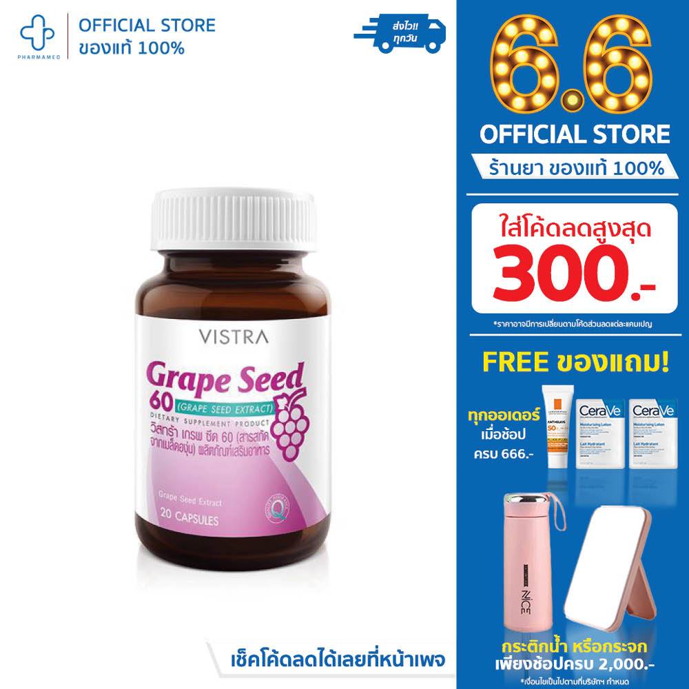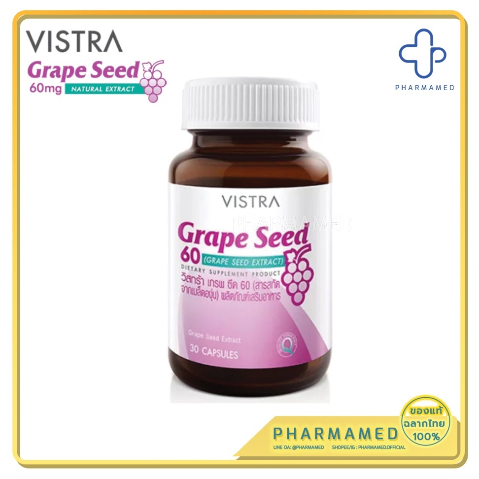 VISTRA Grape Seed Extract 60 mg ผลิตภัณฑ์อาหารเสริม สารสกัดจากเมล็ดองุ่น 30แคป วิสทร้า เกรปซีด