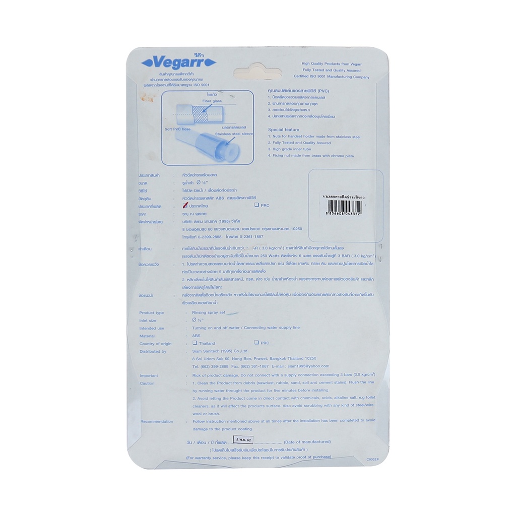 VEGARR ชุดสายฉีดชำระ พลาสติก รุ่น VK333 สีขาว |ZWF|