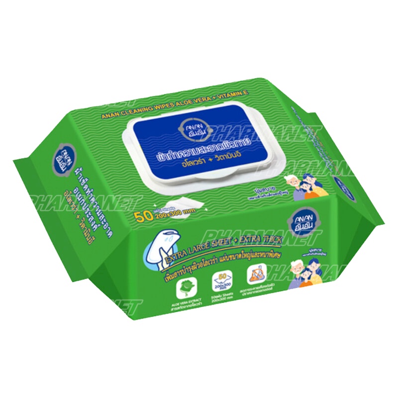ANAN Wet Wipes 50แผ่น อันอัน ทิชชู่เปียก ผ้าทำความสะอาด อเนกประสงค์