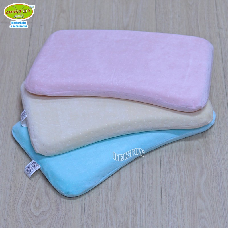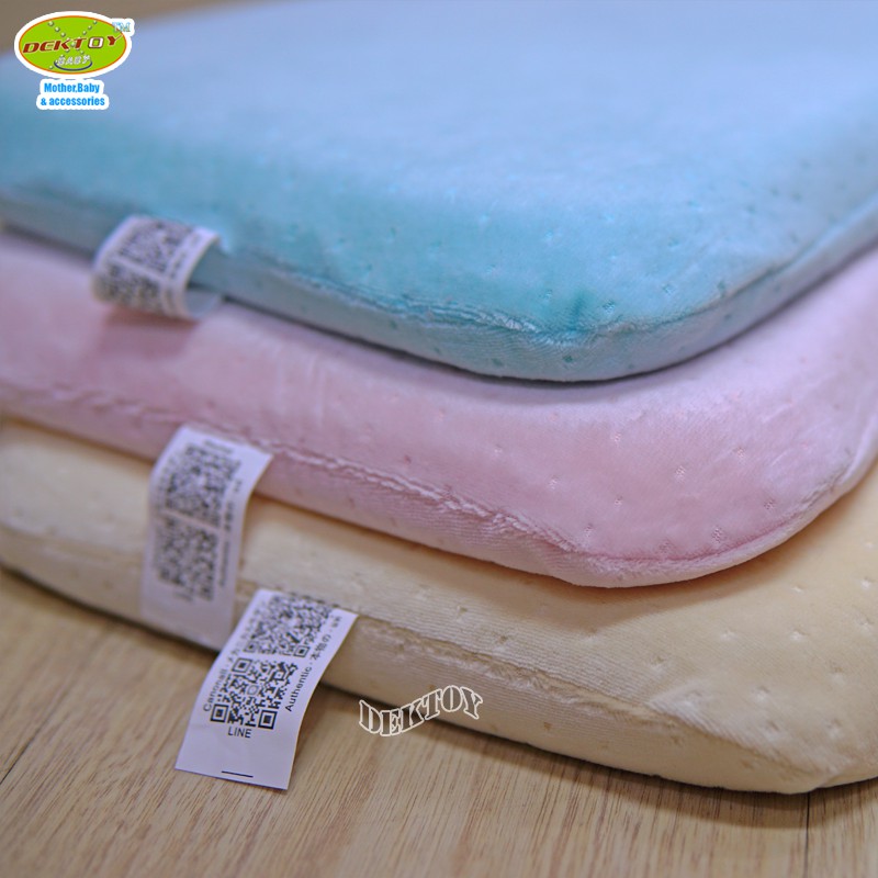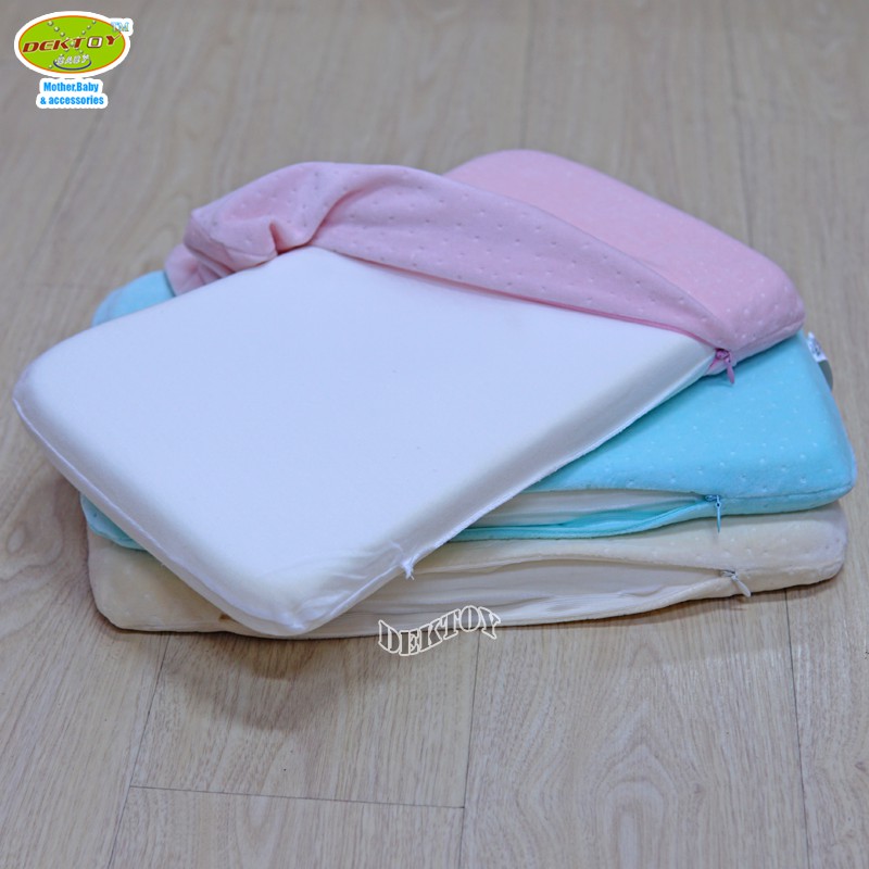 หมอนหนุนเด็กเมมโมรี่โฟมพร้อมปลอก สี่เหลี่ยม สีฟ้า