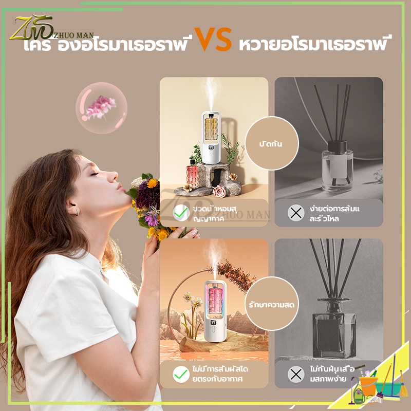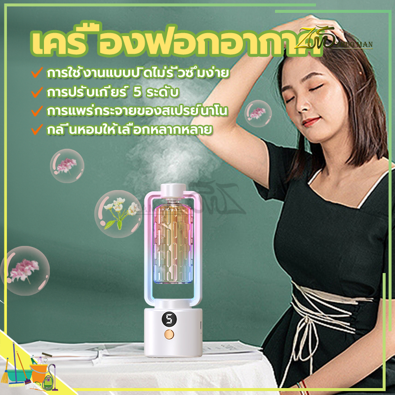 เครื่องพ่นอโรม่าน้ํามันหอมระเหย สเปรย์ระดับนาโน กระจายกลิ่นหอมยาวนาน สามารถตั้งเวลาได้ หน้าจอดิจิทัล แบบชาร์จไฟได้