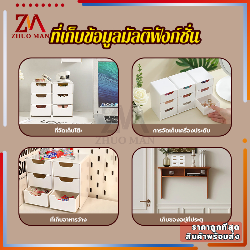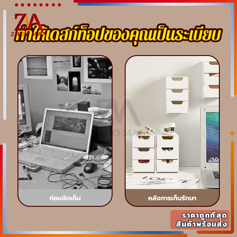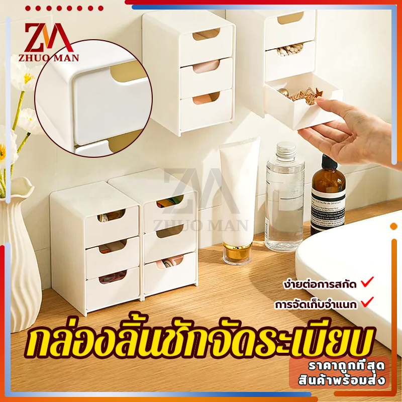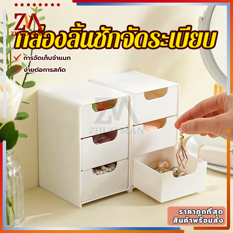 ลิ้นชักเก็บของ ลิ้นชักตั้งโต๊ะ กล่องลิ้นชัก ลิ้นชักอเนกประสงค์ กล่องเก็บของตั้งโต๊ะ กล่องใส่เครื่องสำอาง มี3ช่อง