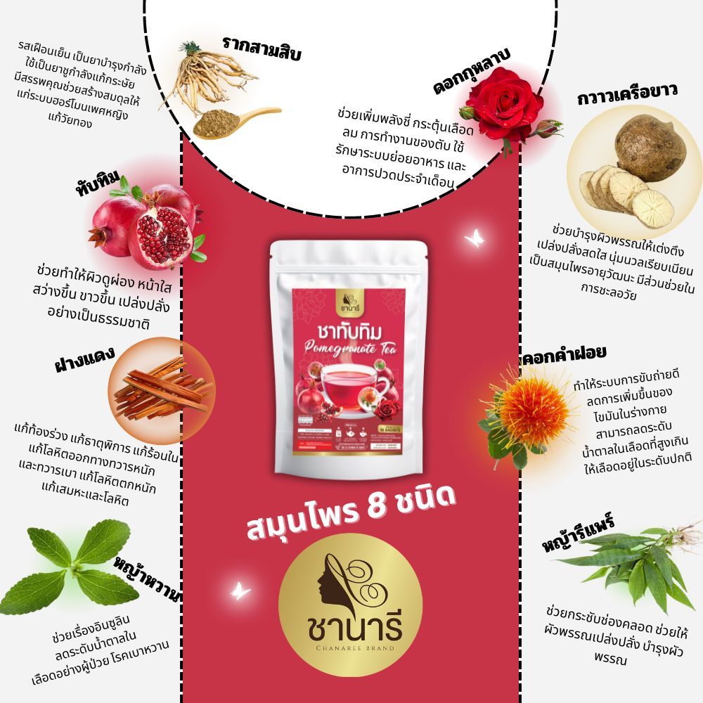 [1แถม1] CHANAREE TEA ชานารี ชา ทับทิม กุหลาบ คาโมมาย เพื่อสุขภาพ ผิวใส ดอกคำฝอย ลดน้ำตาล