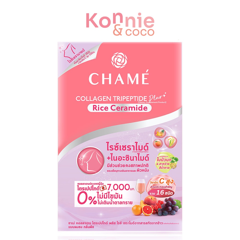 Chame Collagen Tripeptide Plus Rice Ceramide 10 Sachet ชาเม่ ต่ภายในด้วยผลิตภัณฑ์เสริมอาหาร.