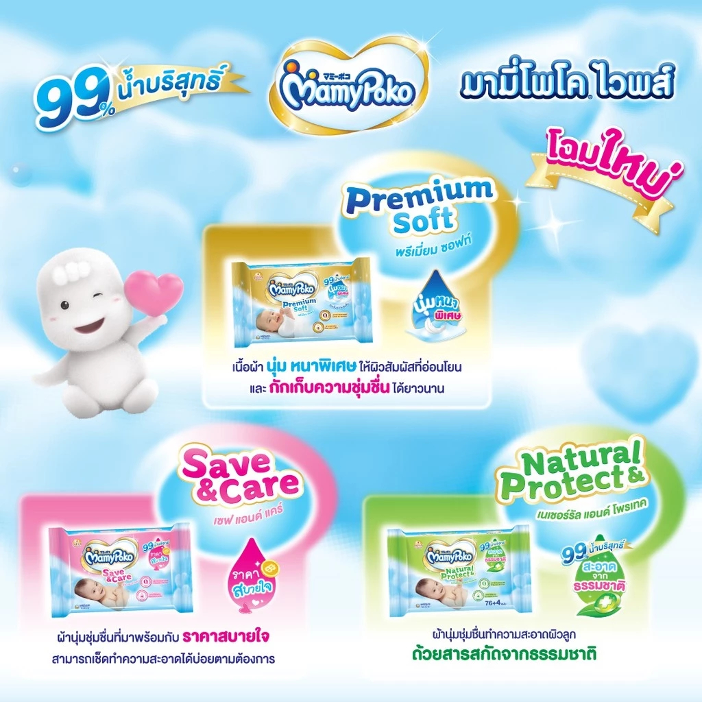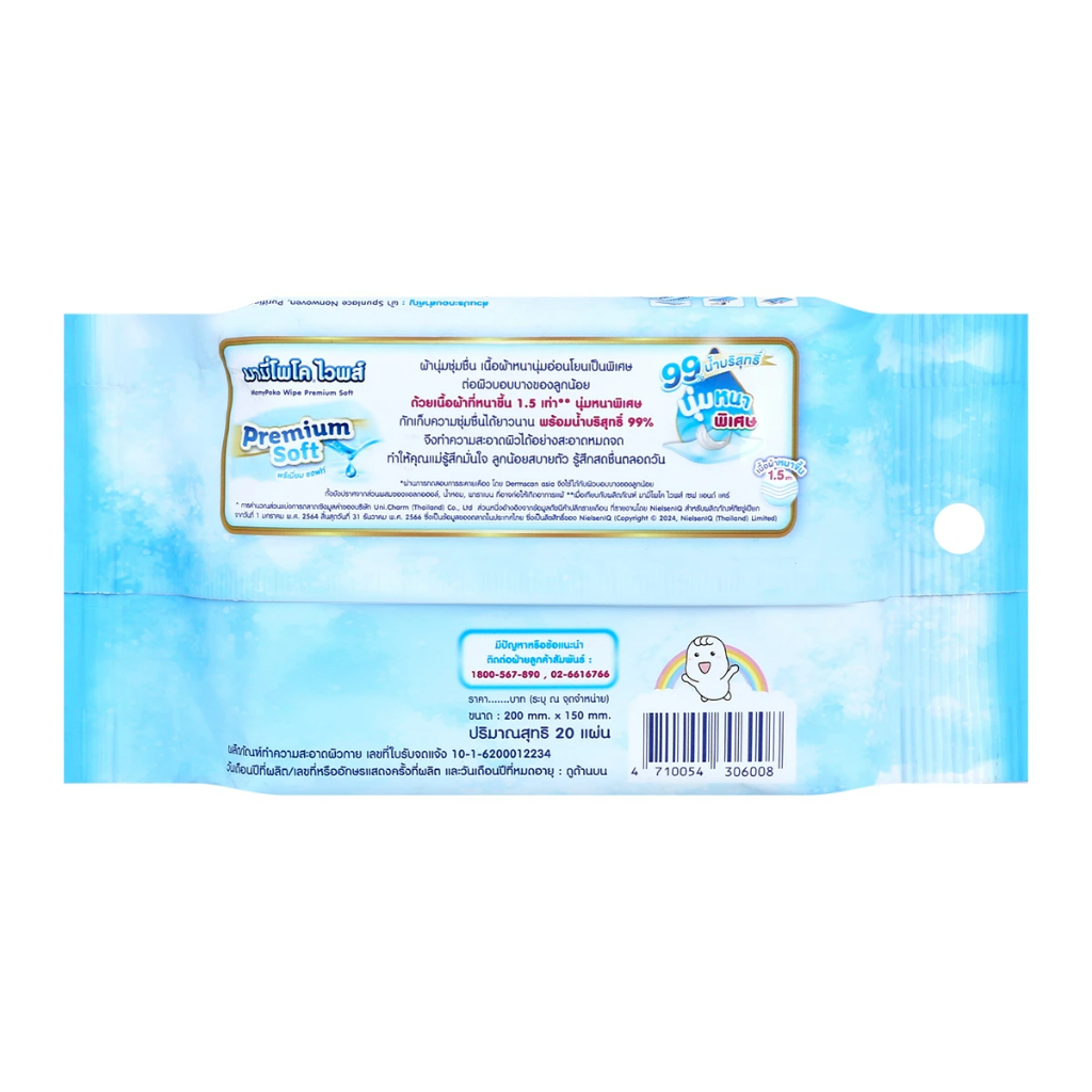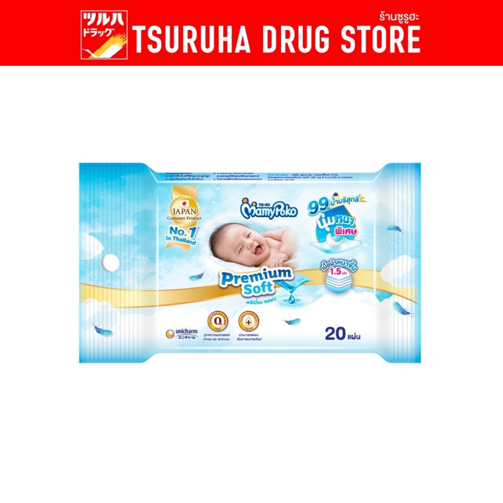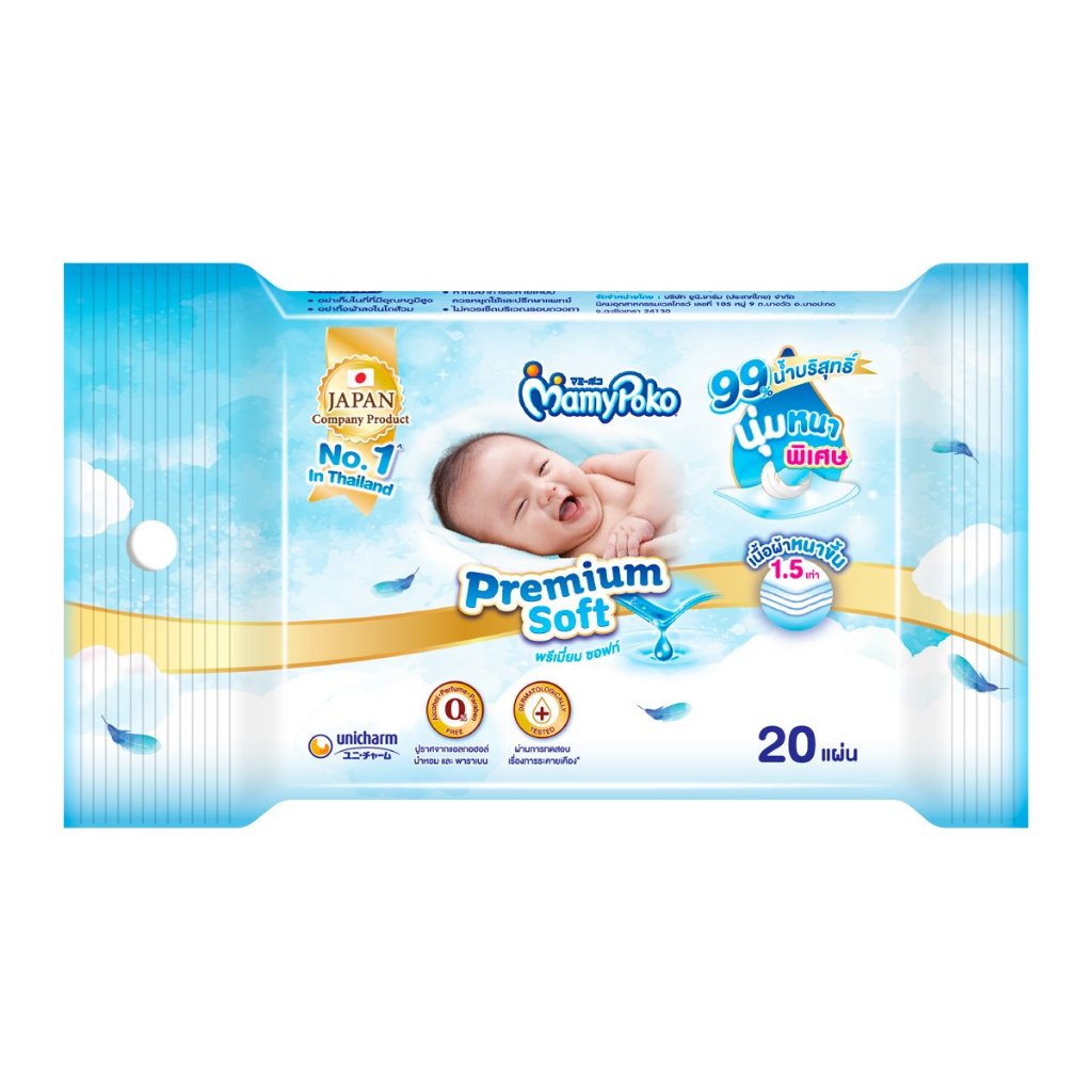 มามี่โพโค ไวพส์ พรีเมียม ซอฟต์ ผ้าเปียกนุ่มชุ่มชื่น 20 แผ่น / MamyPoko Baby Wipes Premium Soft 20pcs.