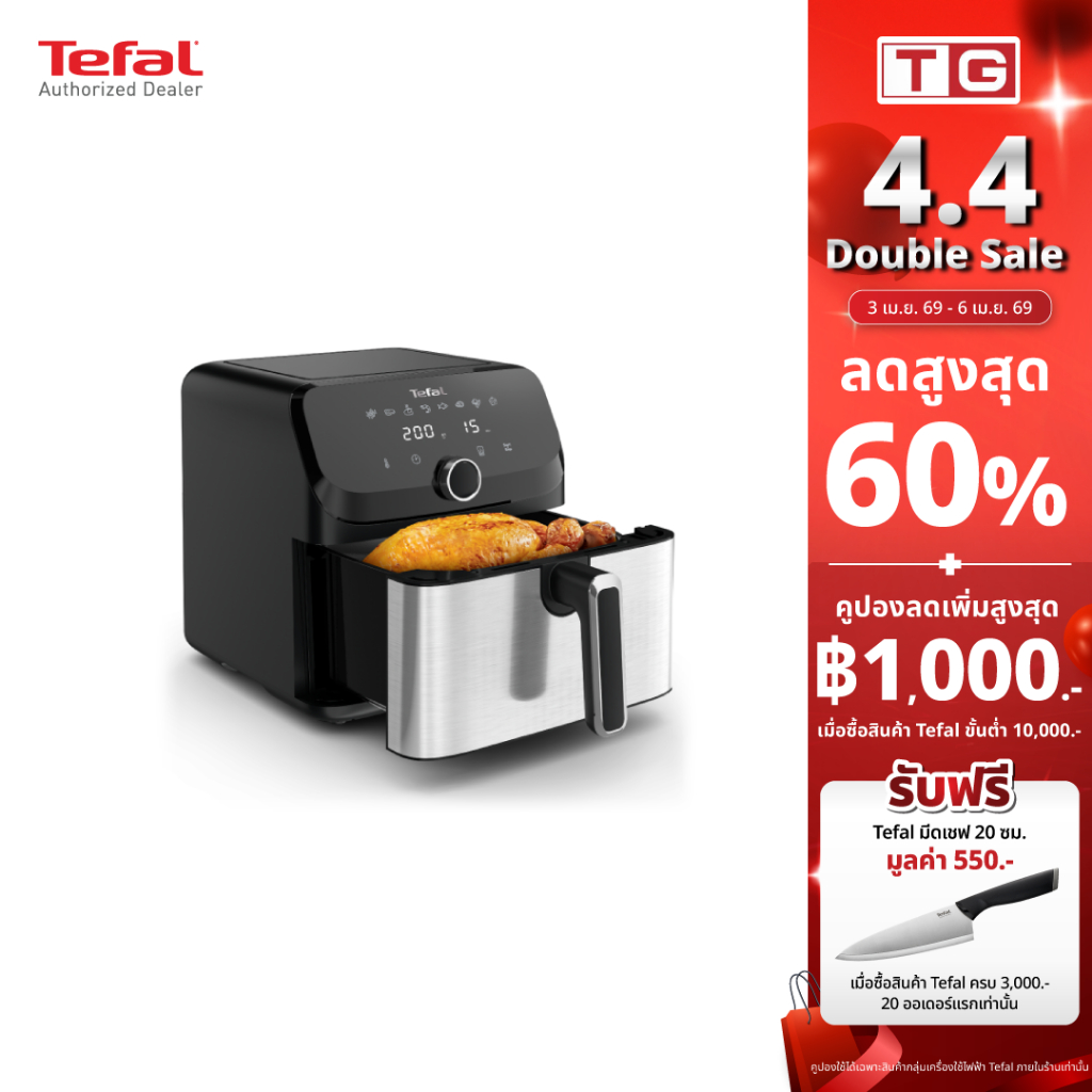 TEFAL หม้อทอดไร้น้ำมัน 7.5 ลิตร 2020 วัตต์ รุ่น EY855D68 รับประกันศูนย์ 2ปี