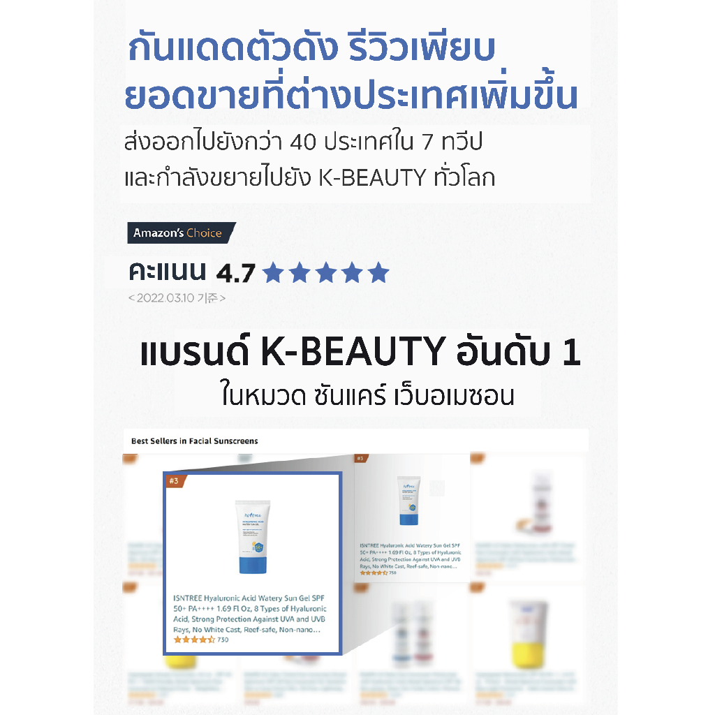 [กันแดดแจมิน] ISNTREE Hyaluronic Acid Watery Sun Gel SPF50+ PA++++ 50 ml.