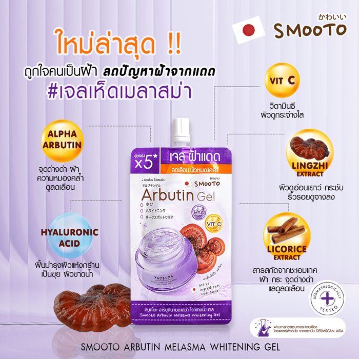 (1กล่อง) Smooto เจลบำรุงผิวหน้า Arbutin Melasma Whitening Gel 30 กรัม
