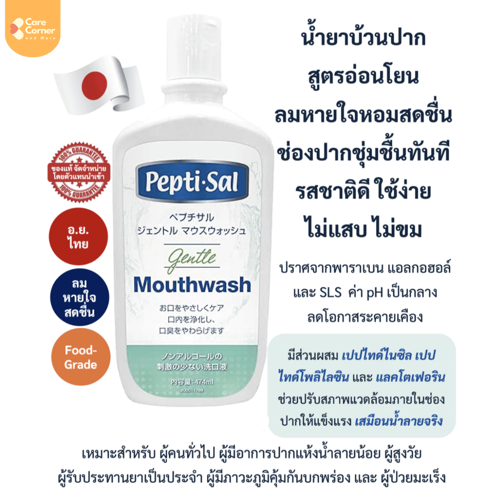 Peptisal Mouthwash เปปติซัล น้ำยาบ้วนปาก ปากแห้ง น้ำลายน้อย ผู้สูงอายุ เบาหวาน มะเร็ง ฉายแสง ฉายรังสี คีโม ทันตแพทย์