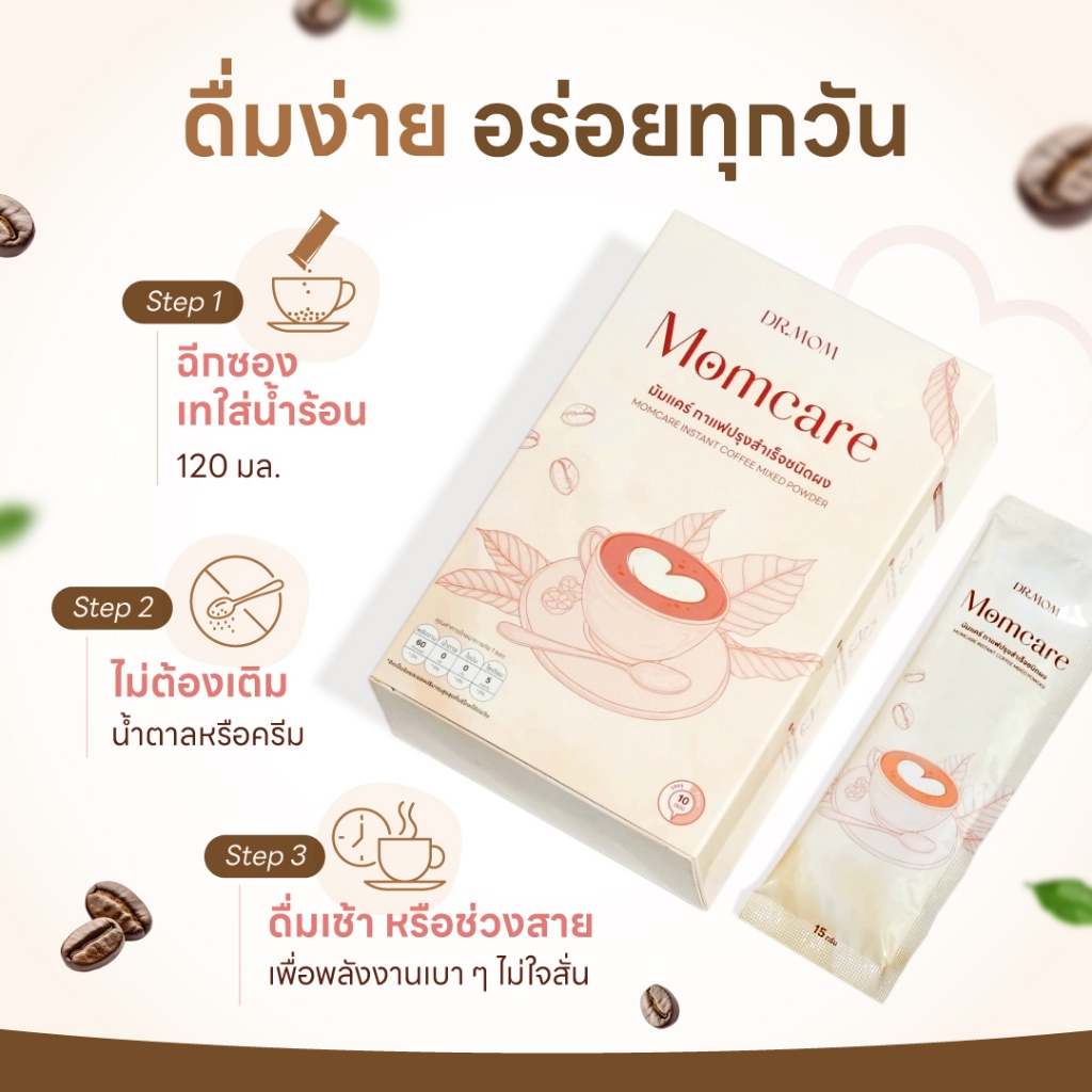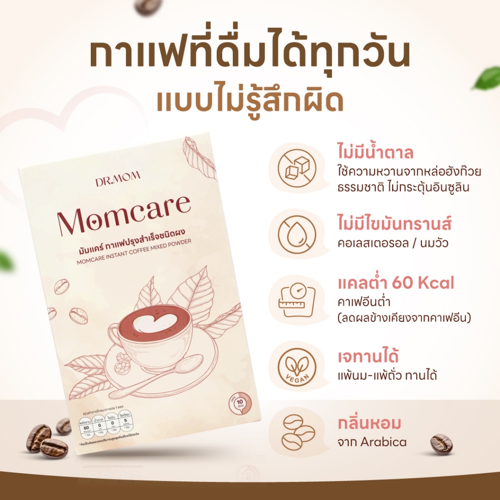 [ส่งด่วน] Dr.Mom Momcare Instant Coffee Mixed Powder กาแฟสำเร็จรูปดอกเตอร์มัม (1กล่อง10ซอง) น้ำตาลหล่อฮังก๊วย คาเฟอีนต่ำ