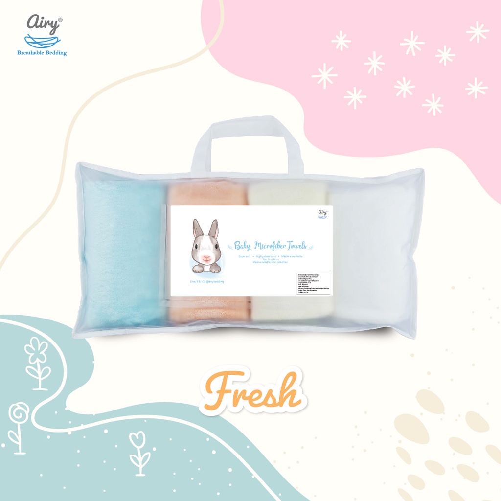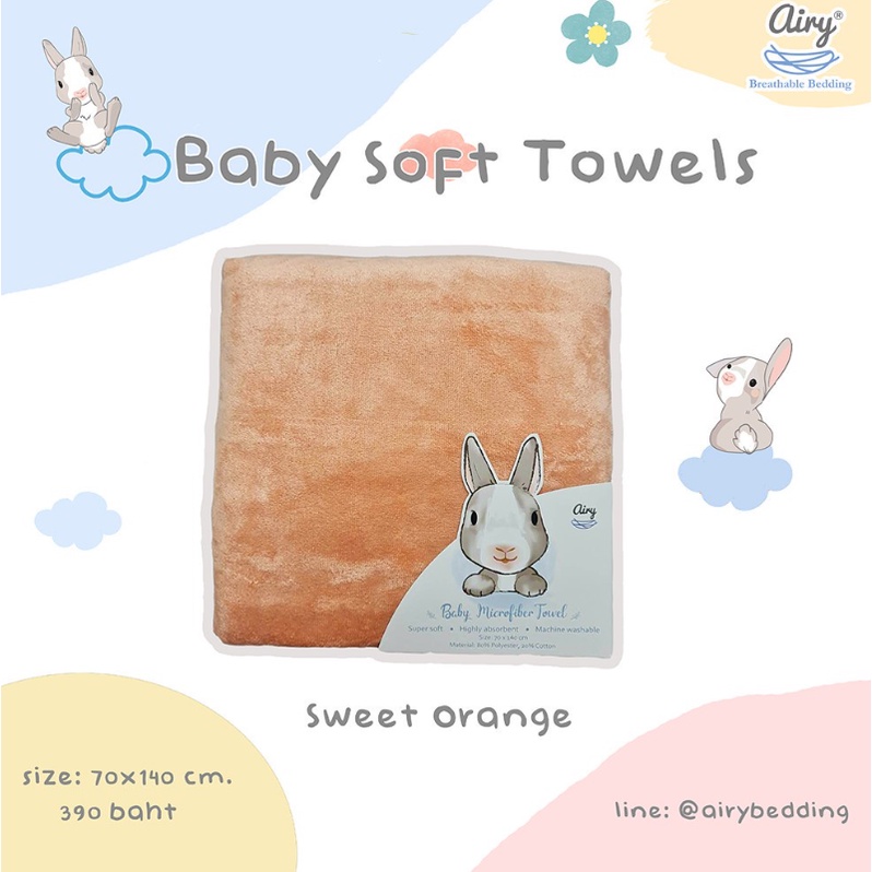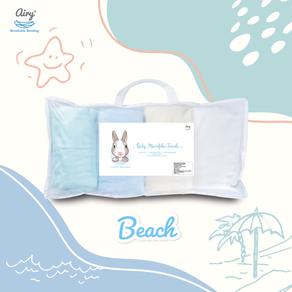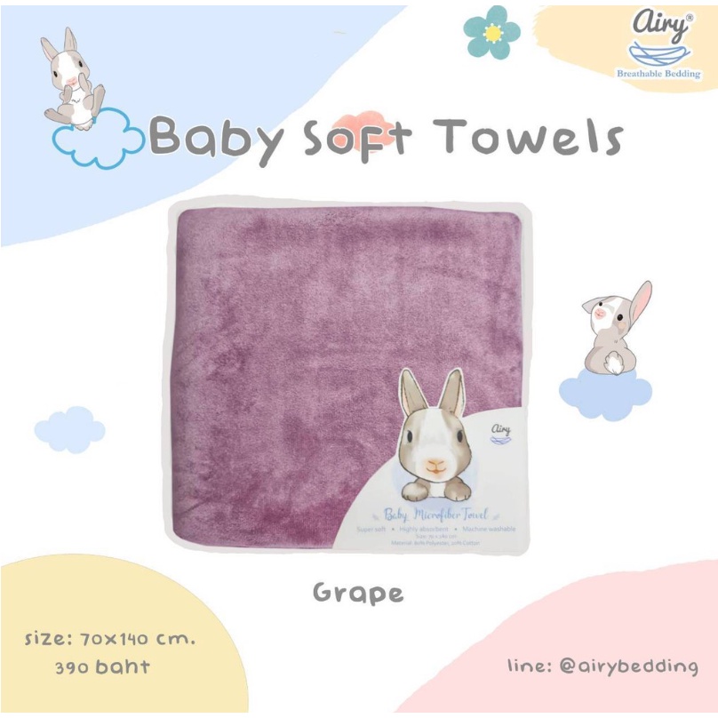 Airy ผ้าเช็ดตัวไมโครไฟเบอร์ เนื้อนุ่ม ซึมซับดี ใช้ได้ทั้งเด็กและผู้ใหญ่ ขนาด70x140 cm.