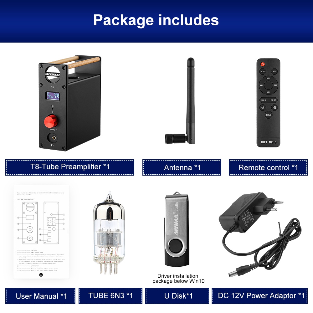 Aiyima T8 6N3 เครื่องขยายเสียงดิจิทัล Hi-Fi บลูทูธ 5.0 พร้อมรีโมตคอนโทรล สําหรับตัวรับสัญญาณเสียงไร้สาย PC-USB DAC APTX