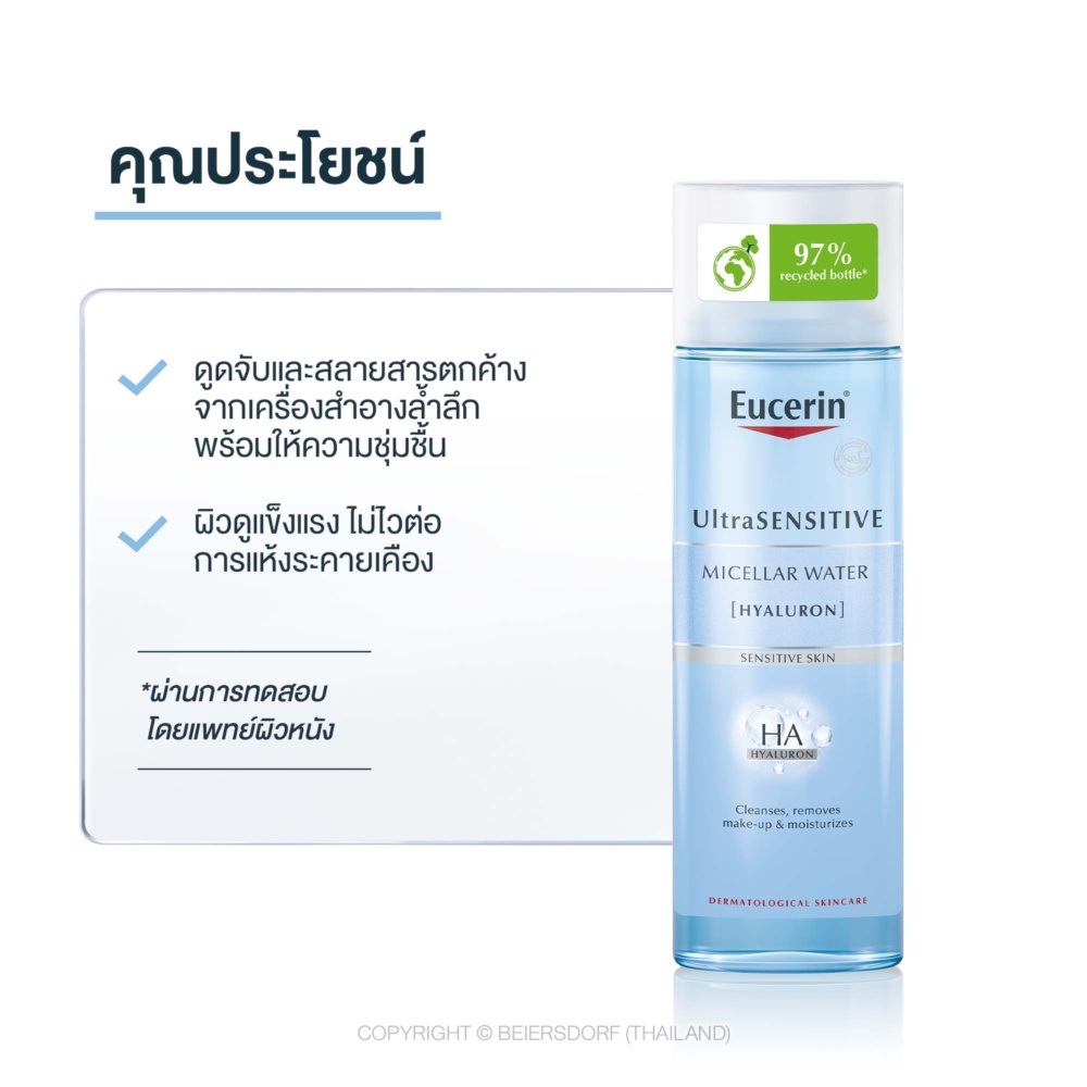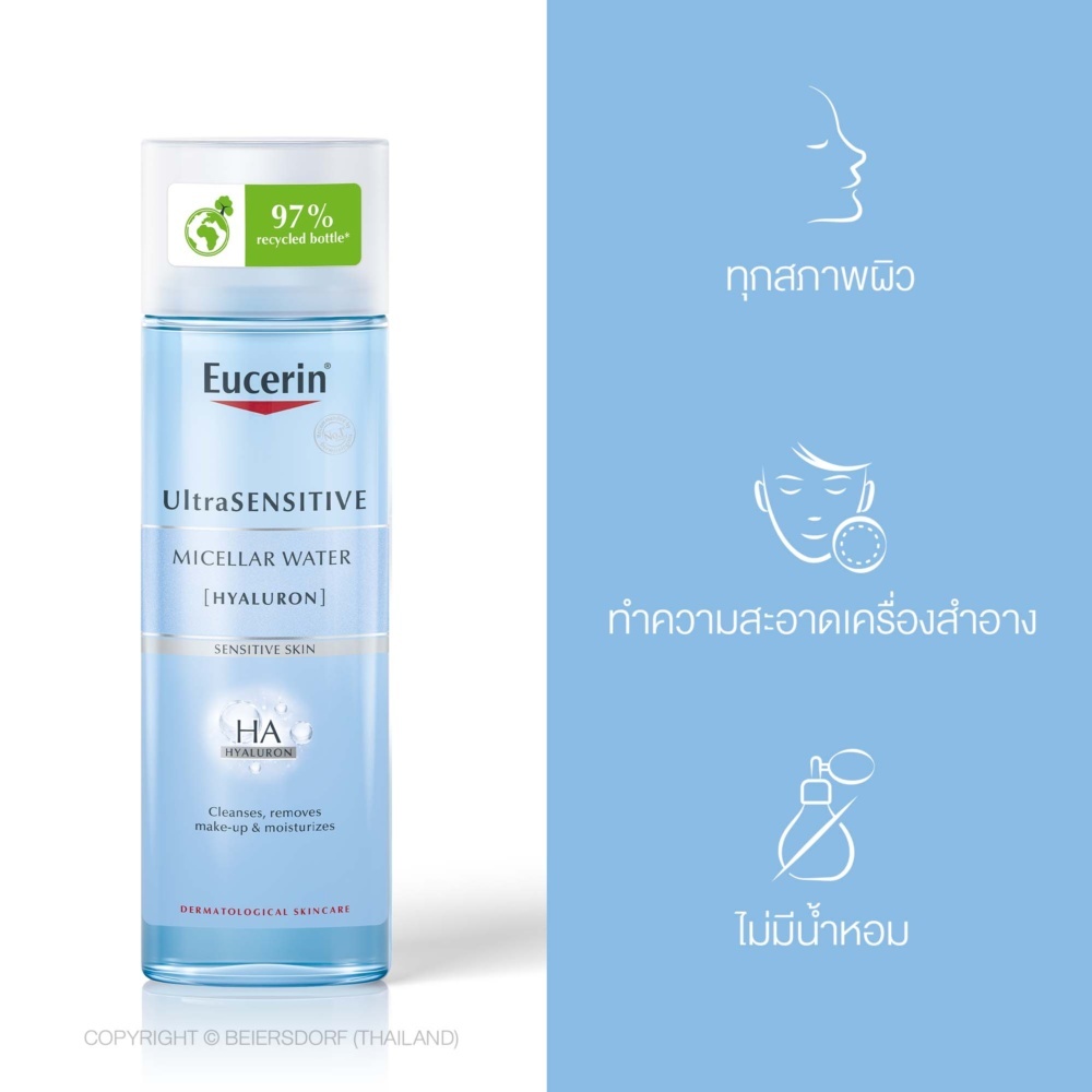 Eucerin Ultrasensitive [Hyaluron] Micellar Water 400ML ยูเซอริน อัลตร้าเซ็นซิทีฟ [ไฮยาลูรอน] ไมเซลล่าร์ วอเตอร์ 400 มล
