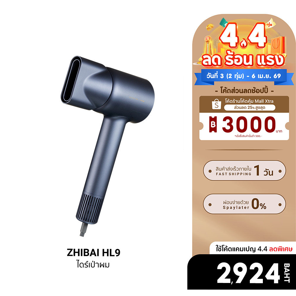 [ลดเหลือ 2924] ZHIBAI HL9 ไดร์เป่าผม 1600W ไอออนลบ ลดเสียงรบกวนแบบพกพา -30D