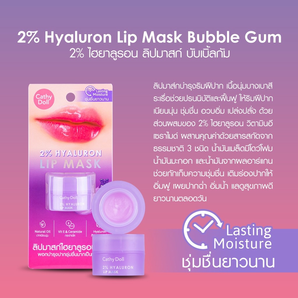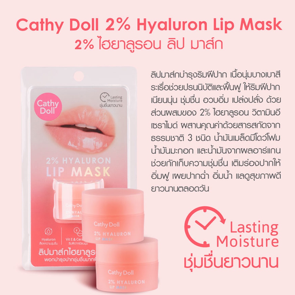 ลิปบาล์ม เคที่ดอลล์ 2% ไฮยาลูรอน ลิป มาส์ก บำรุงริมฝีปาก Cathy Doll 2% Hyaluron Lip Mask 4.5 g.