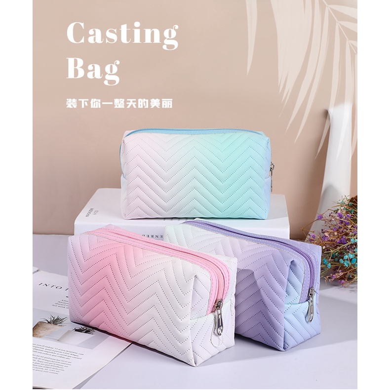 กระเป๋าเครื่องสําอาง หนัง PU ไล่โทนสี แบบพกพา