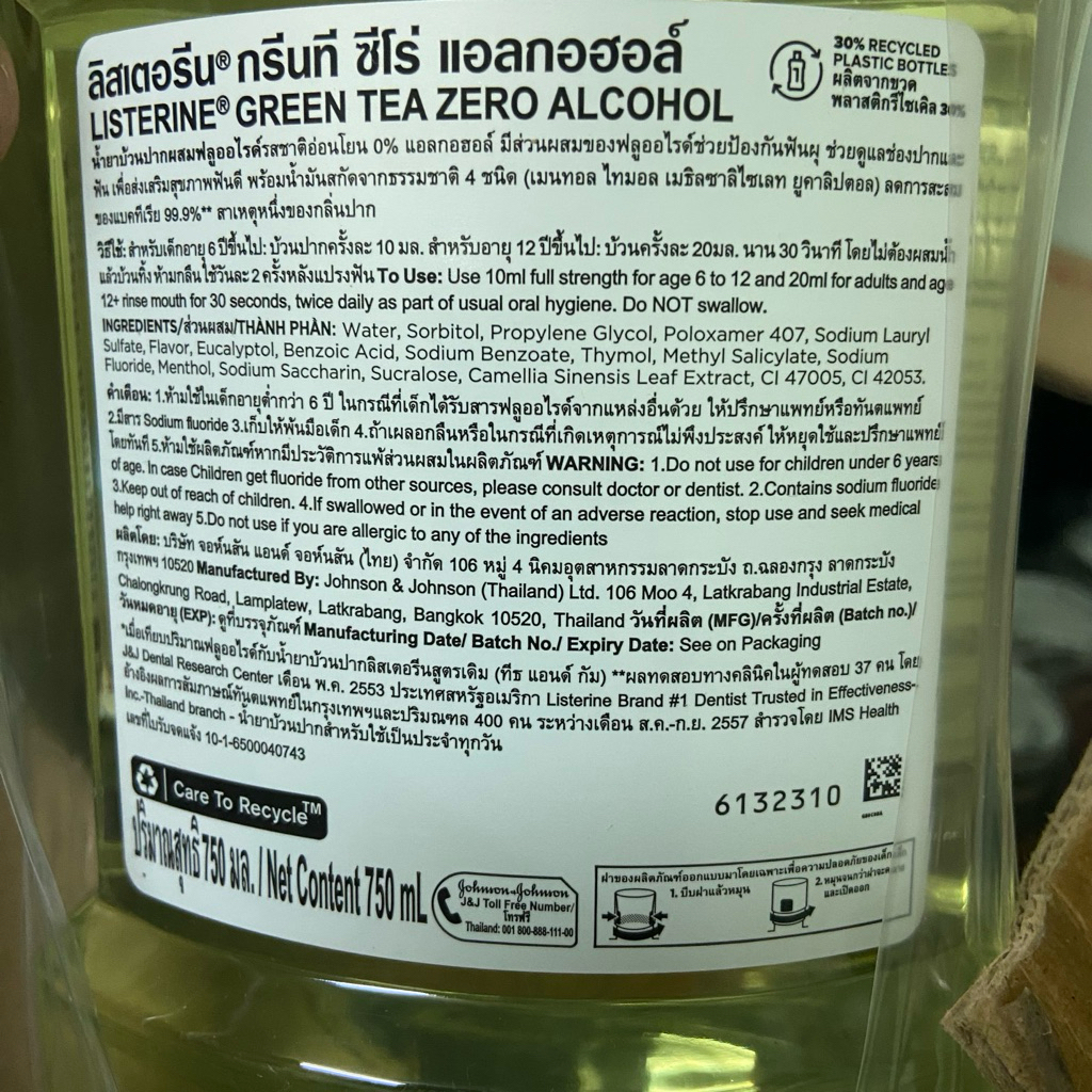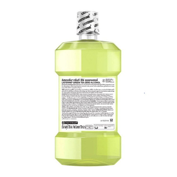 ลิสเตอรีน น้ำยาบ้วนปาก เนเชอรัล กรีนที ซีโร่ 750 มล. Listerine mouthwash Natural Greentea Zero 750 ml. ราคาต่อ 1 ขวด