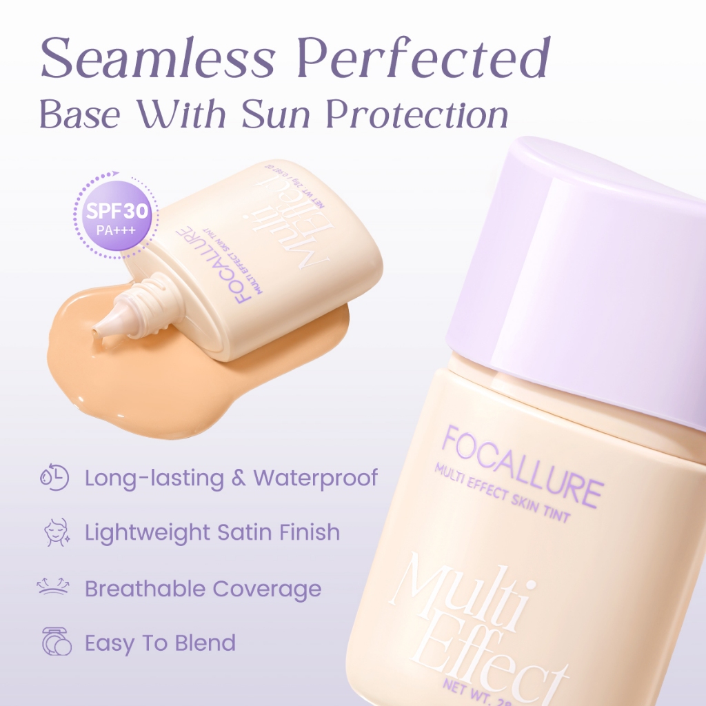 FOCALLURE Bare Multi Effect Liquid Foundation Skin Tint น้ําหนักเบาซาติน Finish Breathable Coverage Non-เหนียวเหนอะหนะ SPF30 PA+++