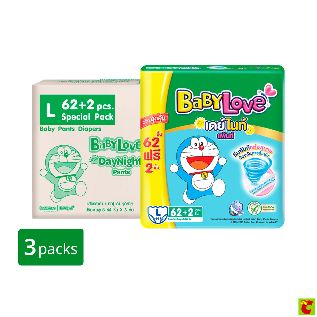 เบบี้เลิฟ เดย์ไนท์ แพ้นท์ กางเกงผ้าอ้อมเด็ก ซูเปอร์จัมโบ้ ขนาด S 78+2 ชิ้น X 3 แพ็ค