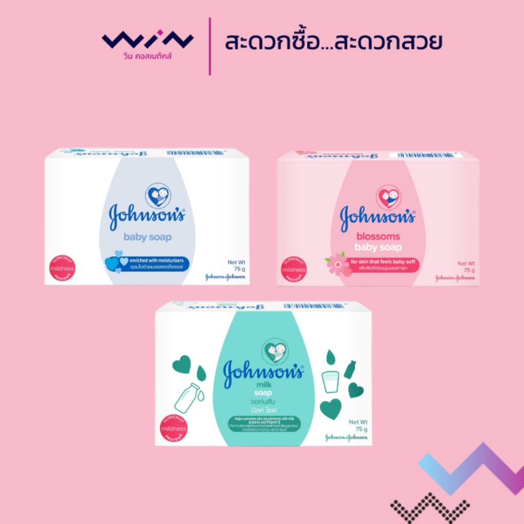 สบู่เด็ก จอห์นสัน 75 กรัม แพ็ค 3-4 ก้อน ช่วยถนอมและบำรุงผิว