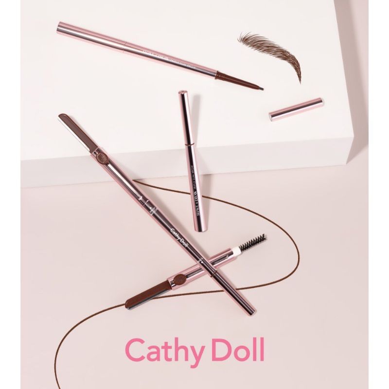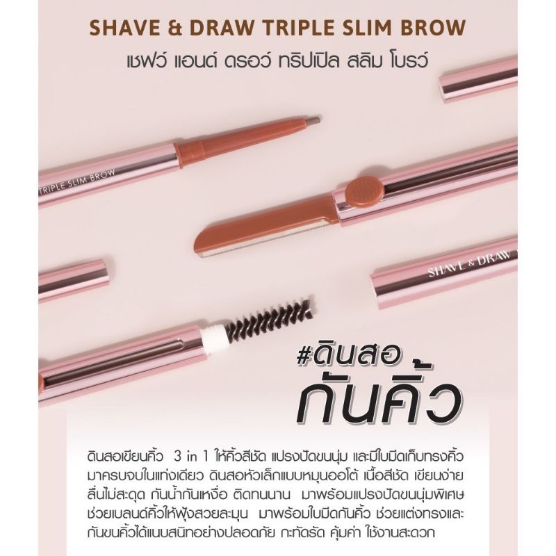 (1ชิ้น)เคที่ดอลล์ 3in1 Shave Draw ดินสอเขียนคิ้วกันน้ำ หัวเล็ก 1.5mm + มีดกันคิ้ว Cathy Doll Triple Slim Brow