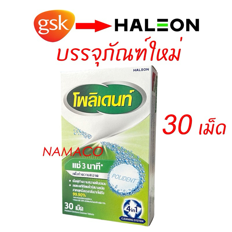 Polident ทำความสะอโพลิเดนท์ เม็ดฟู่ทำความสะอาด 30 เม็ด / กล่อง Polident denture cleaning tablet 30tablet/box
