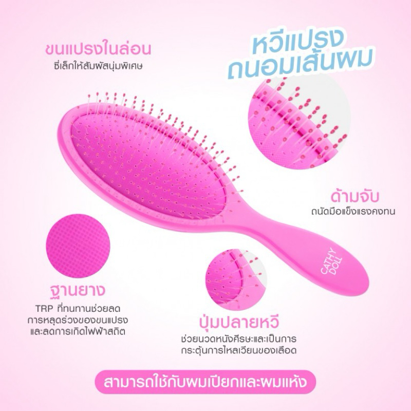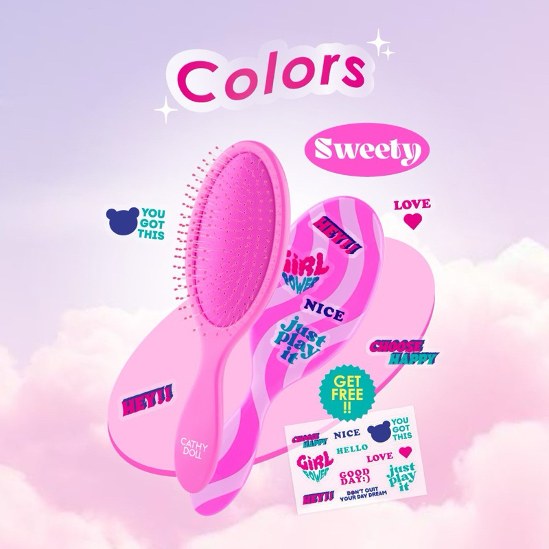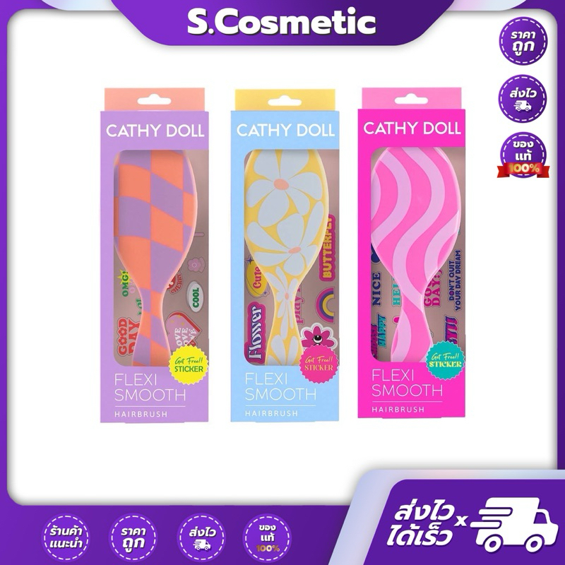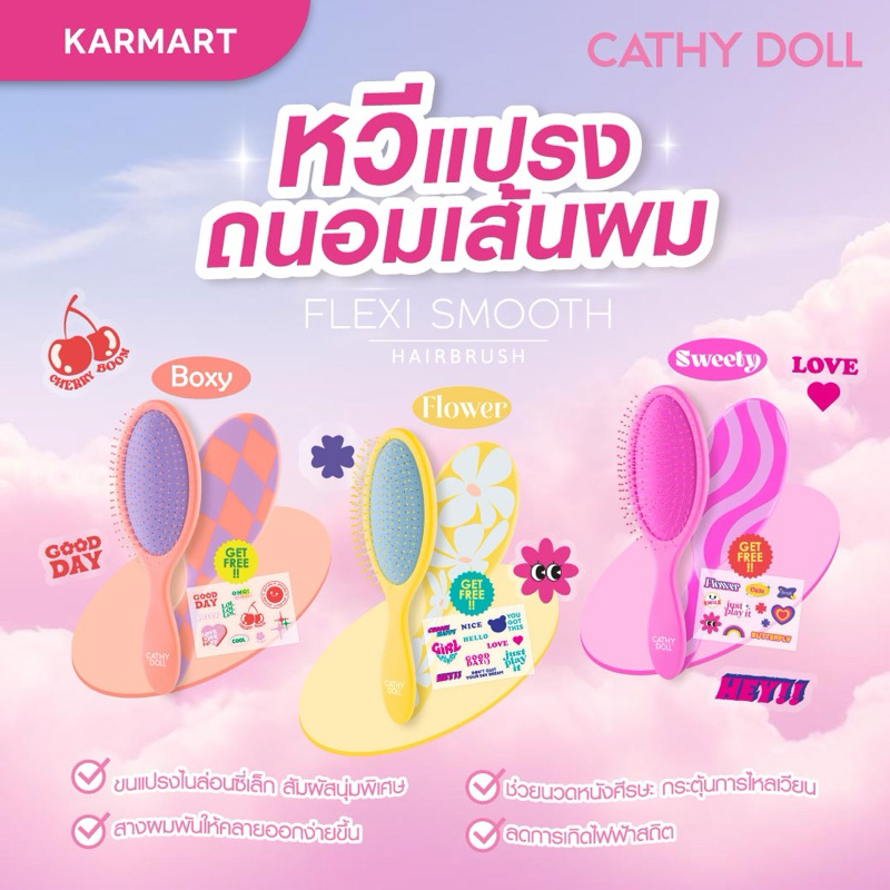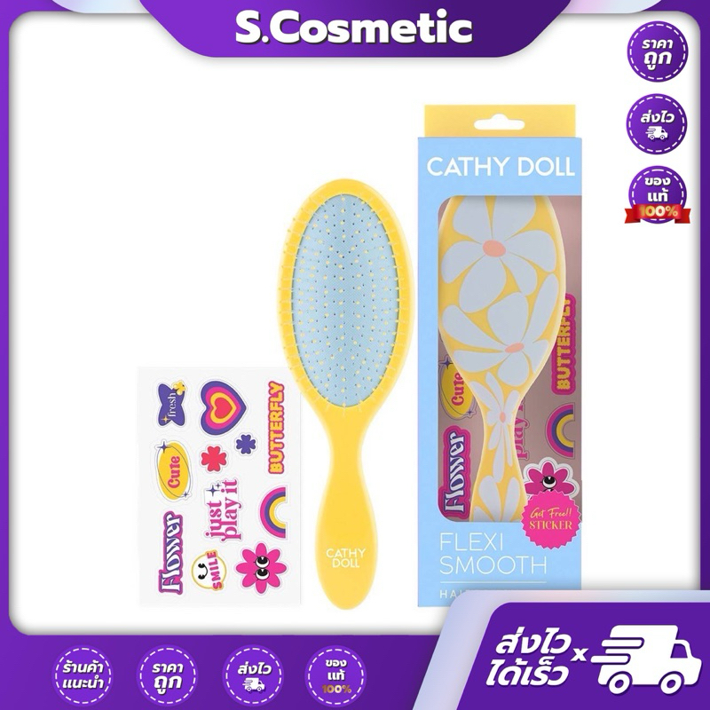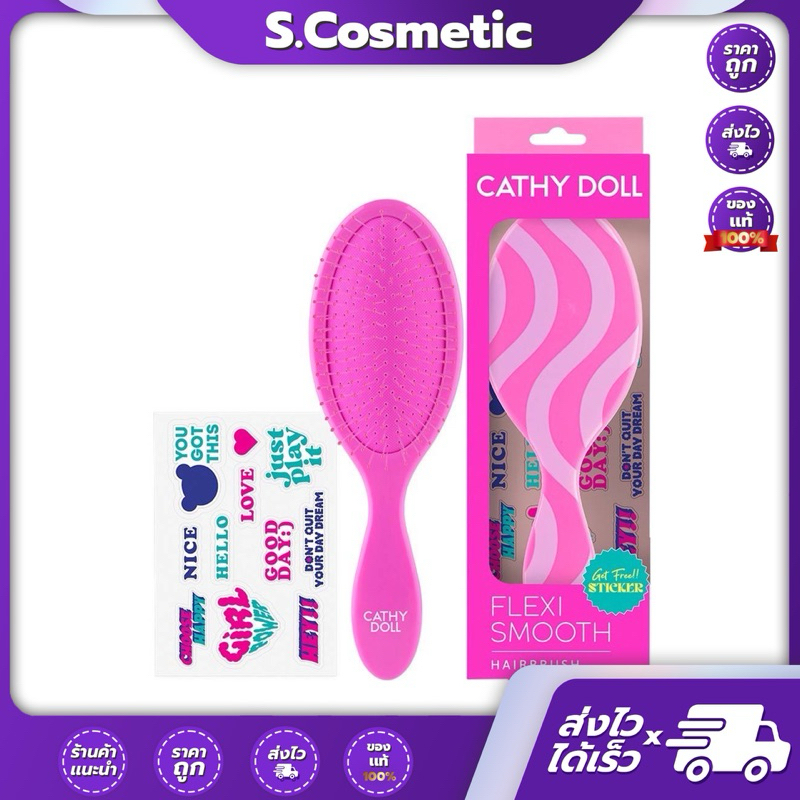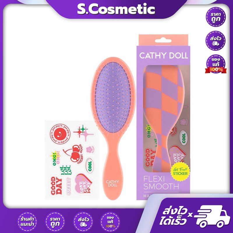 CATHY DOLL เคที่ดอลล์ เฟล็กซีสมูทแฮร์บรัช หวีแปรงถนอมเส้นผม (สติ๊กเกอร์คละลาย)