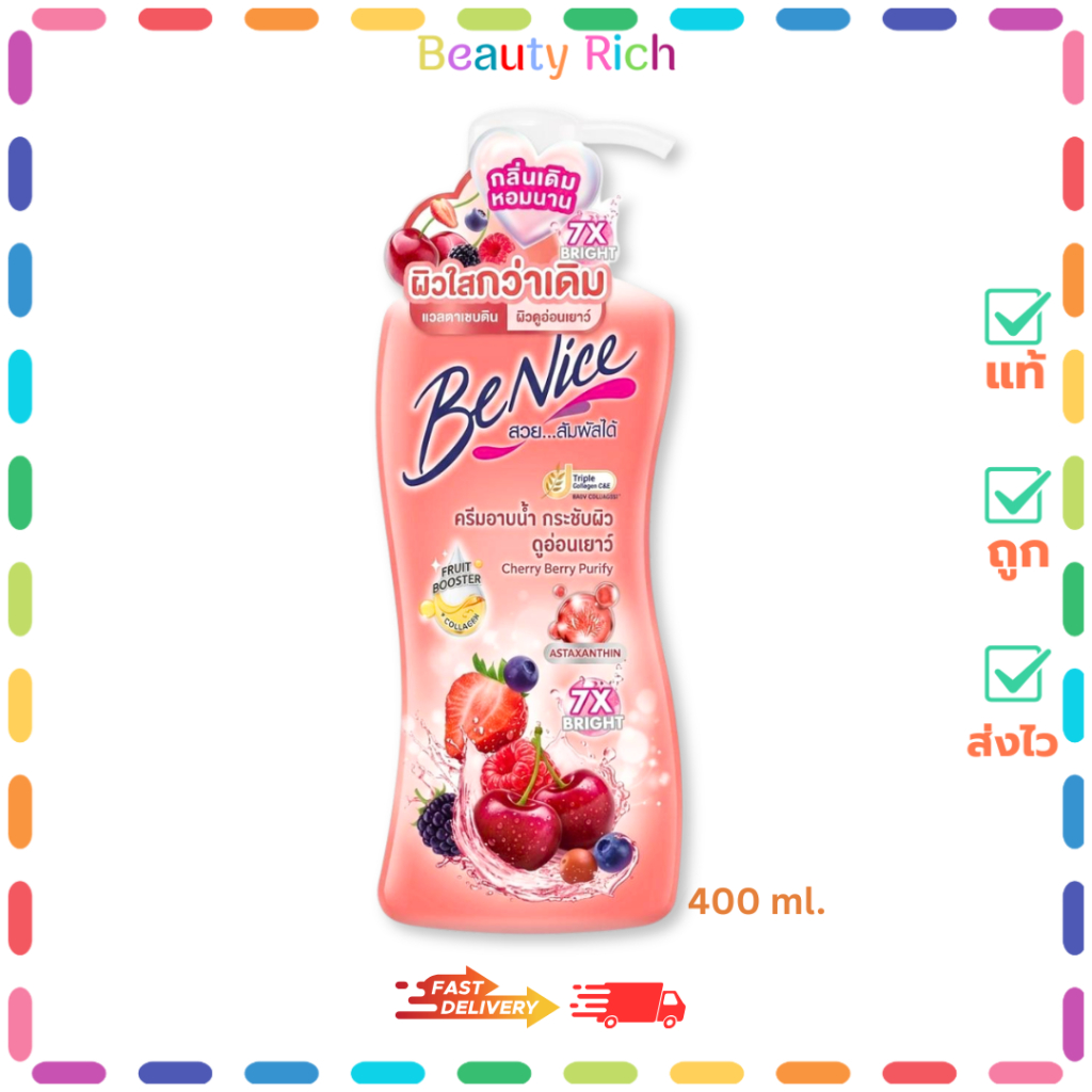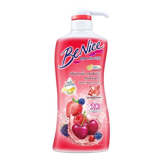 (1 ขวด) แพ็คเกจใหม่ Benice (สีแดง) บีไนซ์ เชอร์รี่ เบอร์รี่ เพียวริฟาย ชาวเวอร์ ครีมอาบน้ำ (400 ml.)