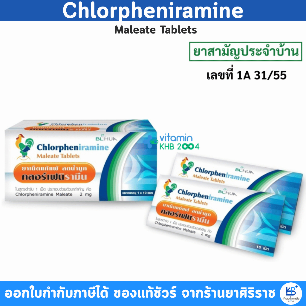 (ยกกล่อง 10แผง) ยาแก้แพ้ คลอร์เฟนิรามีน Chlorpheniramine CPM แผงละ10เม็ด คลอเฟ