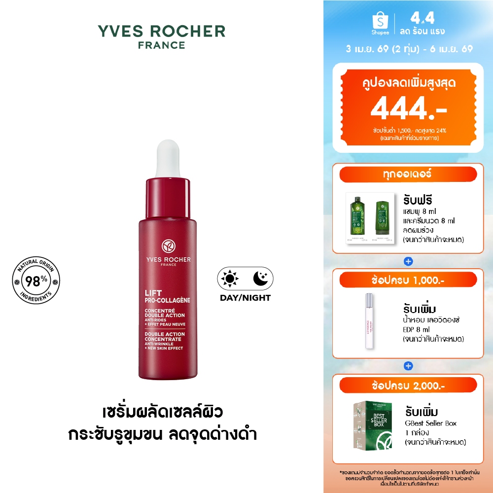 อีฟ โรเช Yves Rocher Lift Pro-Collagene Double Action Concentrate ลิฟท์ โปร-คอลลาเจน เซรั่มผลัดเซลล์ผิว ลดจุดด่างดำ 30มล