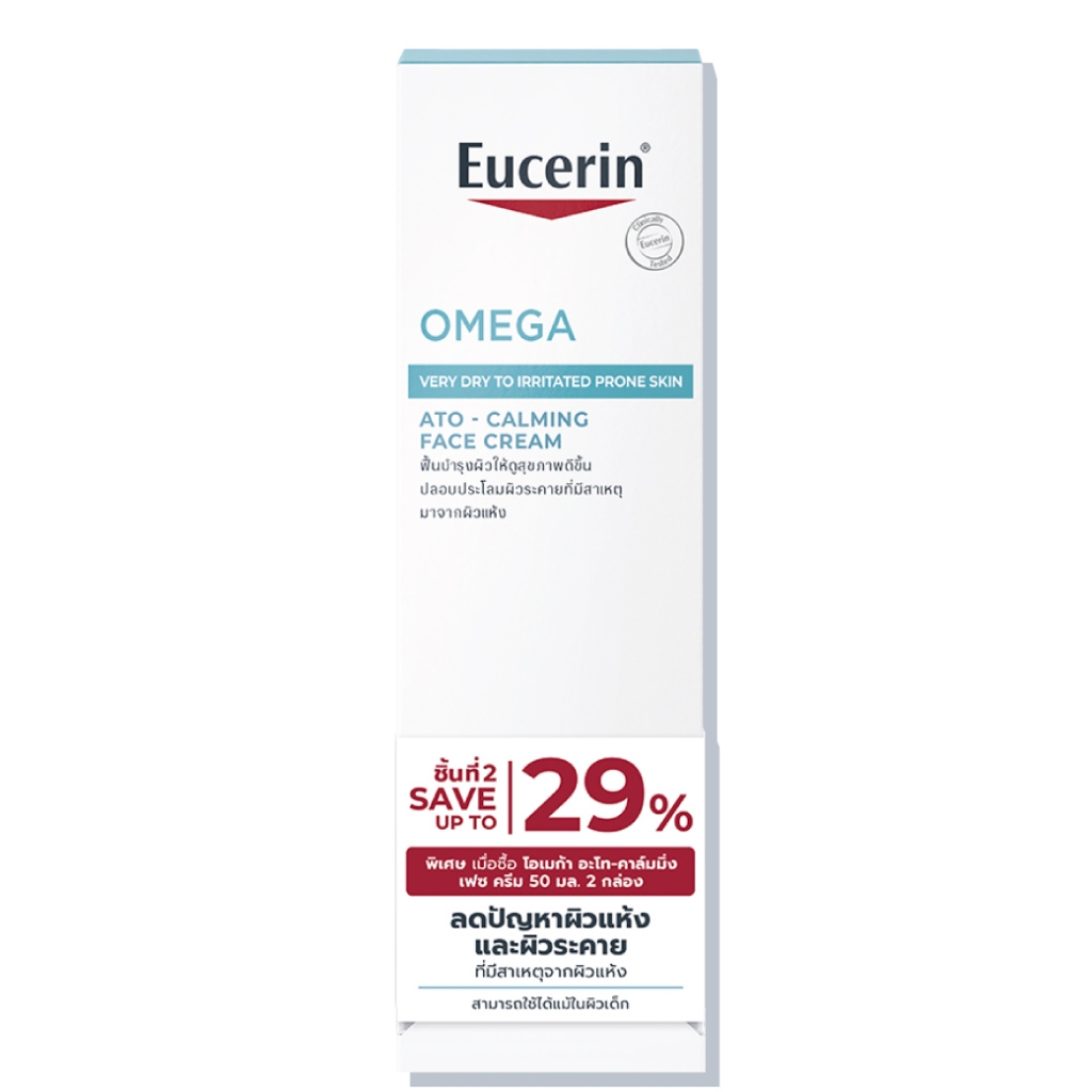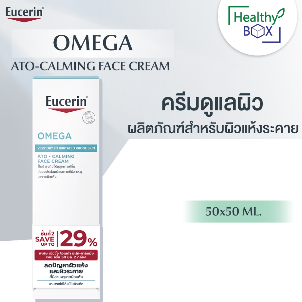 แพ็คคู่ EUCERIN Omega Ato-Calming Face Cream 50ml. ยูเซอริน โอเมก้า เอโท-คาล์มมิ่ง เฟซ ครีม สำหรับผิวแห้งและผิวแพ้ง่าย