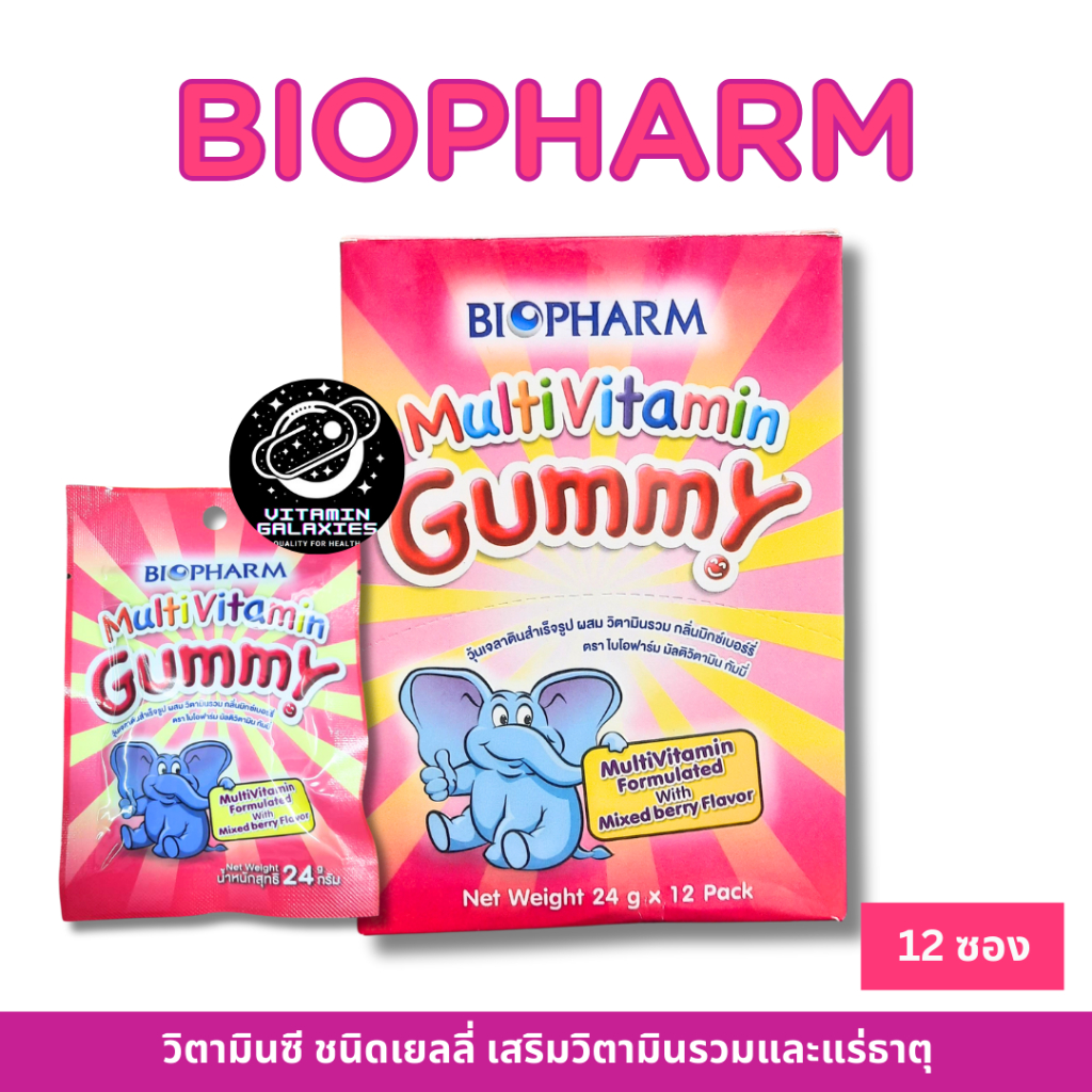 Biopharm Gummy Multivitamin ชนิดเยลลี่ รสมิกซ์เบอร์รี่ (1 กล่อง มี 12 ชิ้น)